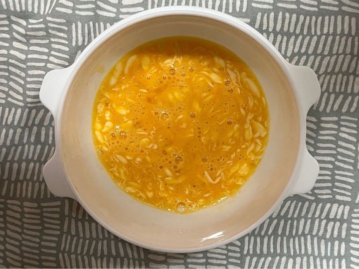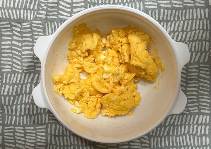 再度、20秒レンチンすればふわふわなスクランブルエッグが完成します。