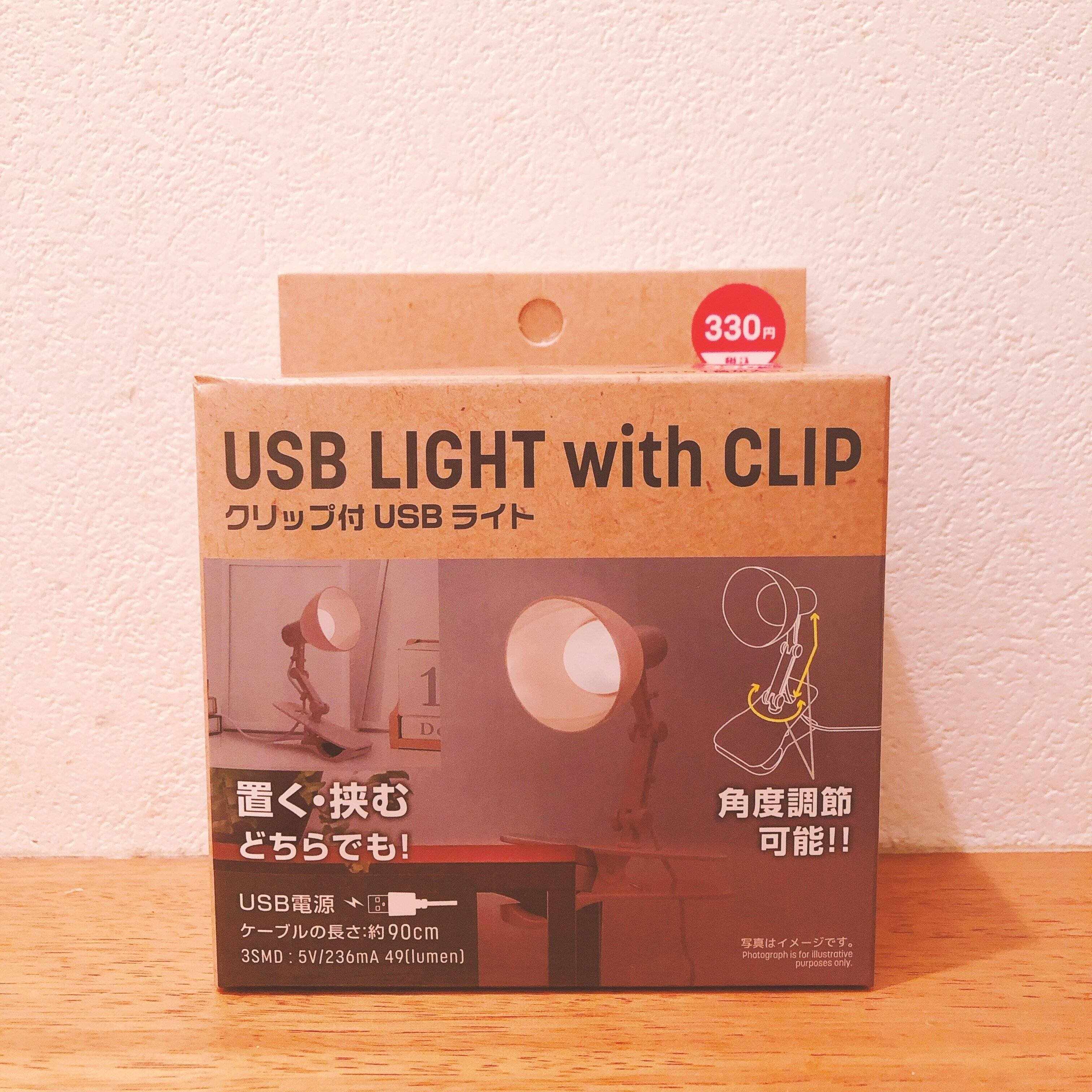 置いても挟んでも使えるクリップ付USBライト。気になる方はダイソーでチェックしてみてください。