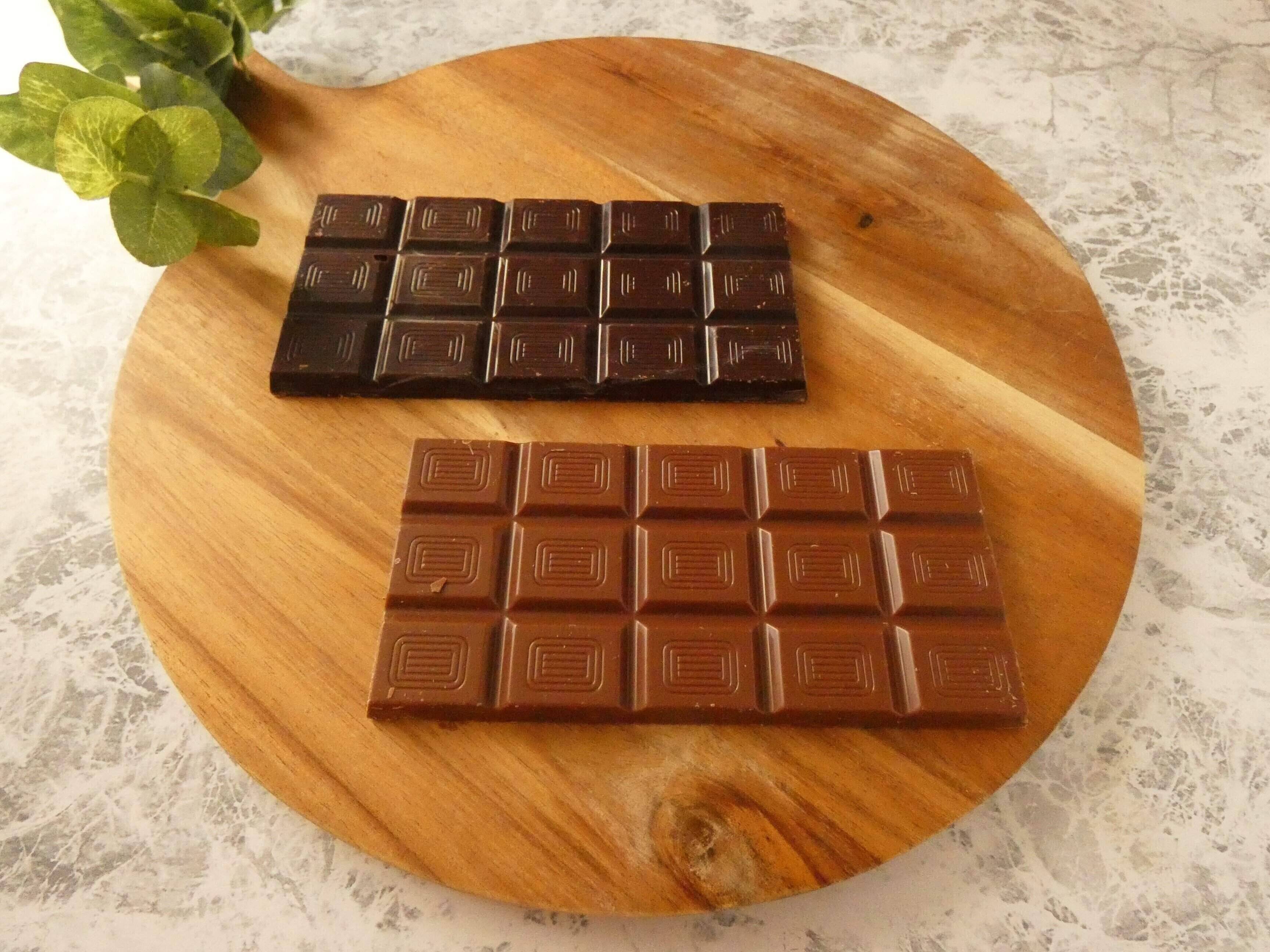 ビターチョコレートはほどよい苦みと甘さで、カカオの風味もしっかり感じます。ミルクチョコレートはしっかり濃厚な甘さで口溶けなめらか。どちらも厚みがあるので食べごたえバッチリで、おいしすぎです。