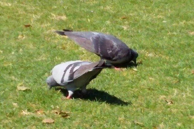 よく公園で見かける鳩はドバト(カワラバト)といいます。鳴き声は「クックー、クックー」「ゴロッポ、ゴロッポ」などで、羽色が灰色のほかに緑や赤が混じったものもいて、首元がギラギラしているように見えるものもいるなど多彩です。基本的には草食性ですが、人の食べ物を食べるなど、雑食に近い食性を見せるものもいます。