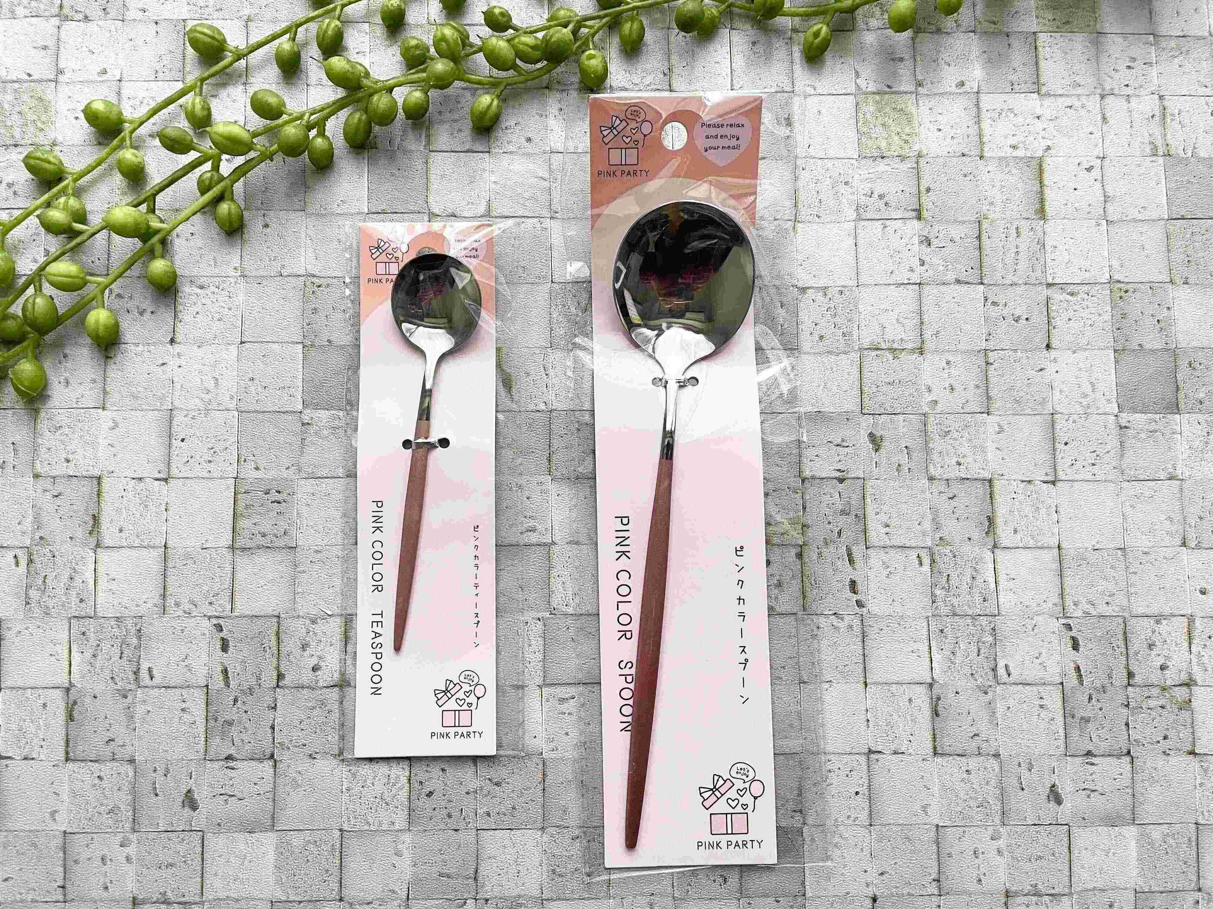 ご紹介するのは、ワッツの「ピンクカラースプーン」と「ピンクカラーティースプーン」です。値段はそれぞれ110円。