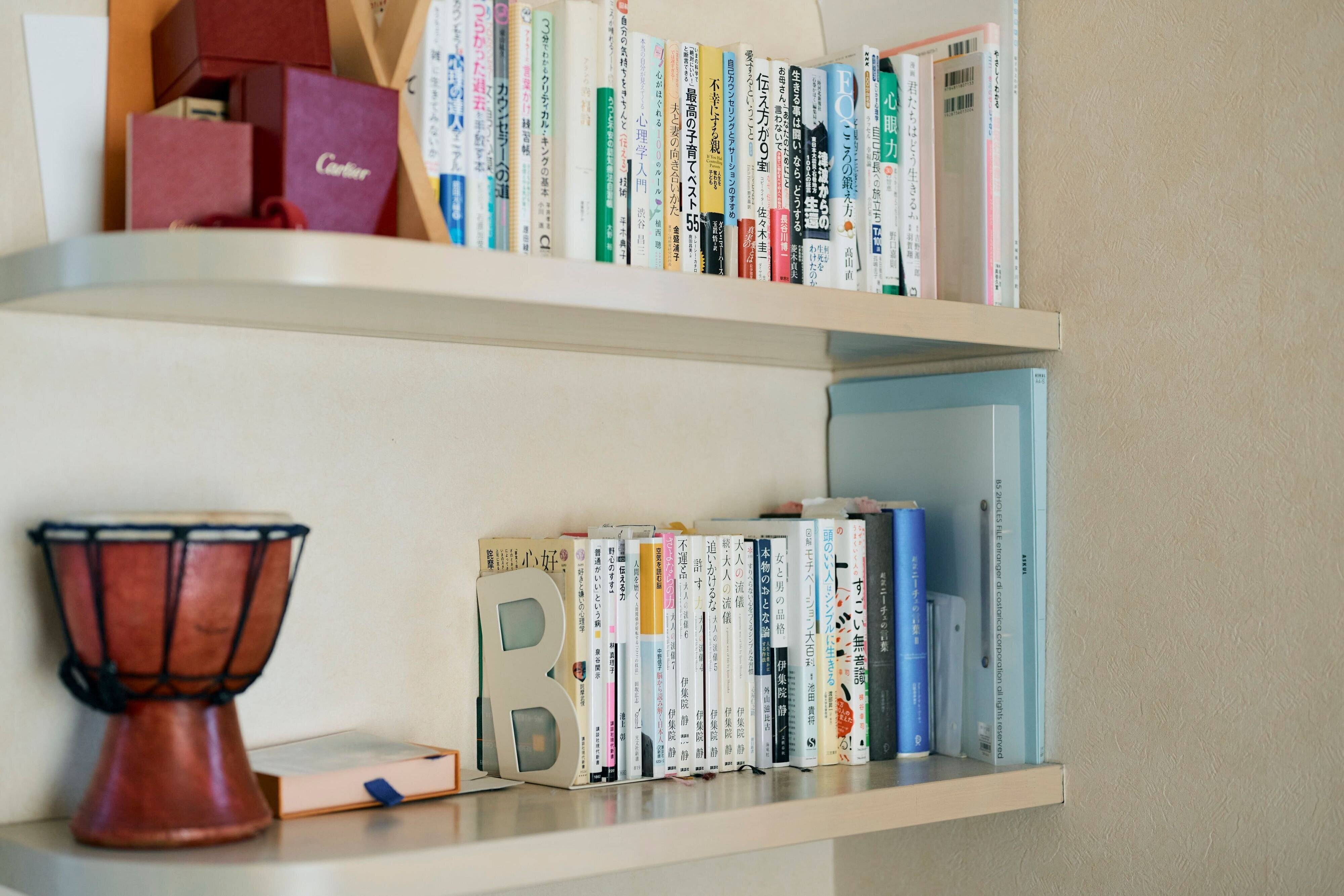 50歳になった現在は、主に心理カウンセラーとして活動しています。自宅の一画にある彼女の仕事場の棚から、そこに辿り着くまでのストーリーをお伺いしました。