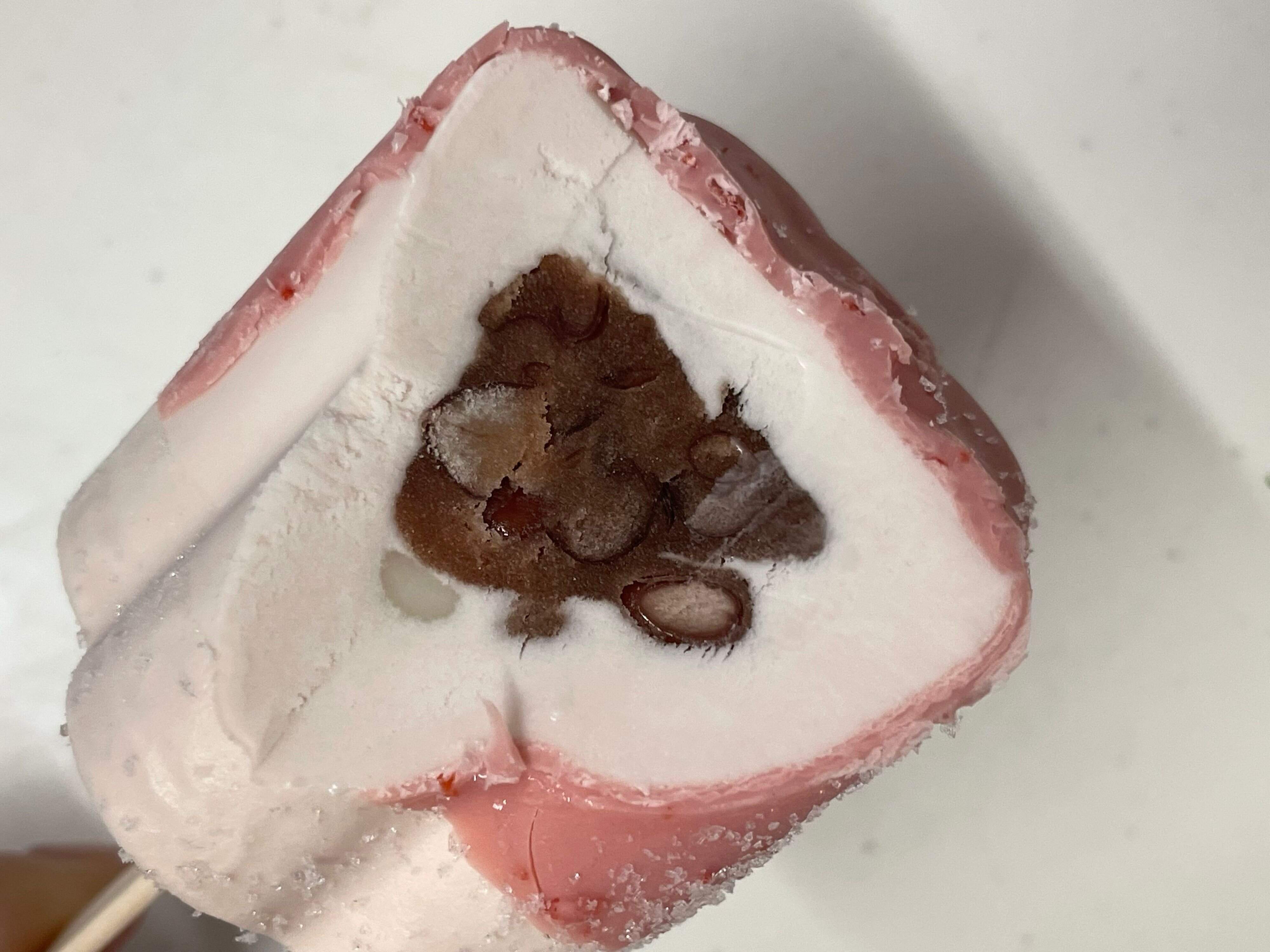 あんこが上品な甘さで苺の酸味を包んでいるアイスです。