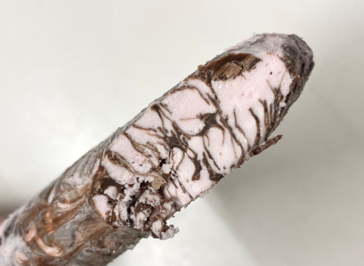 しまうま柄のように何層もチョコレートが重なって、どこを食べてもパリパリ食感が味わえるのが特徴です。