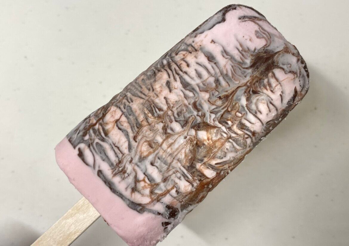 チョコレートはビターな味わいで、甘酸っぱいいちごアイスとのバランスがいいです。