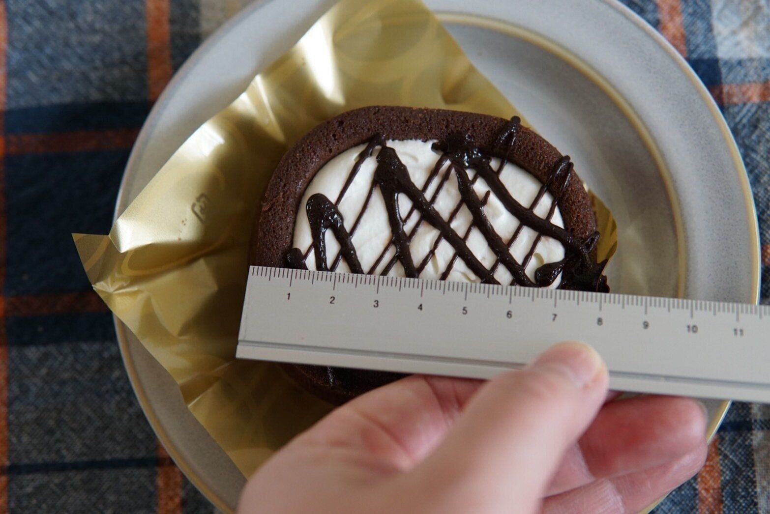 サイズを計ってみたら、横8cm縦7cmほどのビッグサイズ。商品が入っているプラスチック容器もプレミアムロールケーキと同サイズだと思われます。大きいからこその大きな口をあけて頬張るという感覚、それは通常版にはないもので贅沢な気分にさせてくれました。