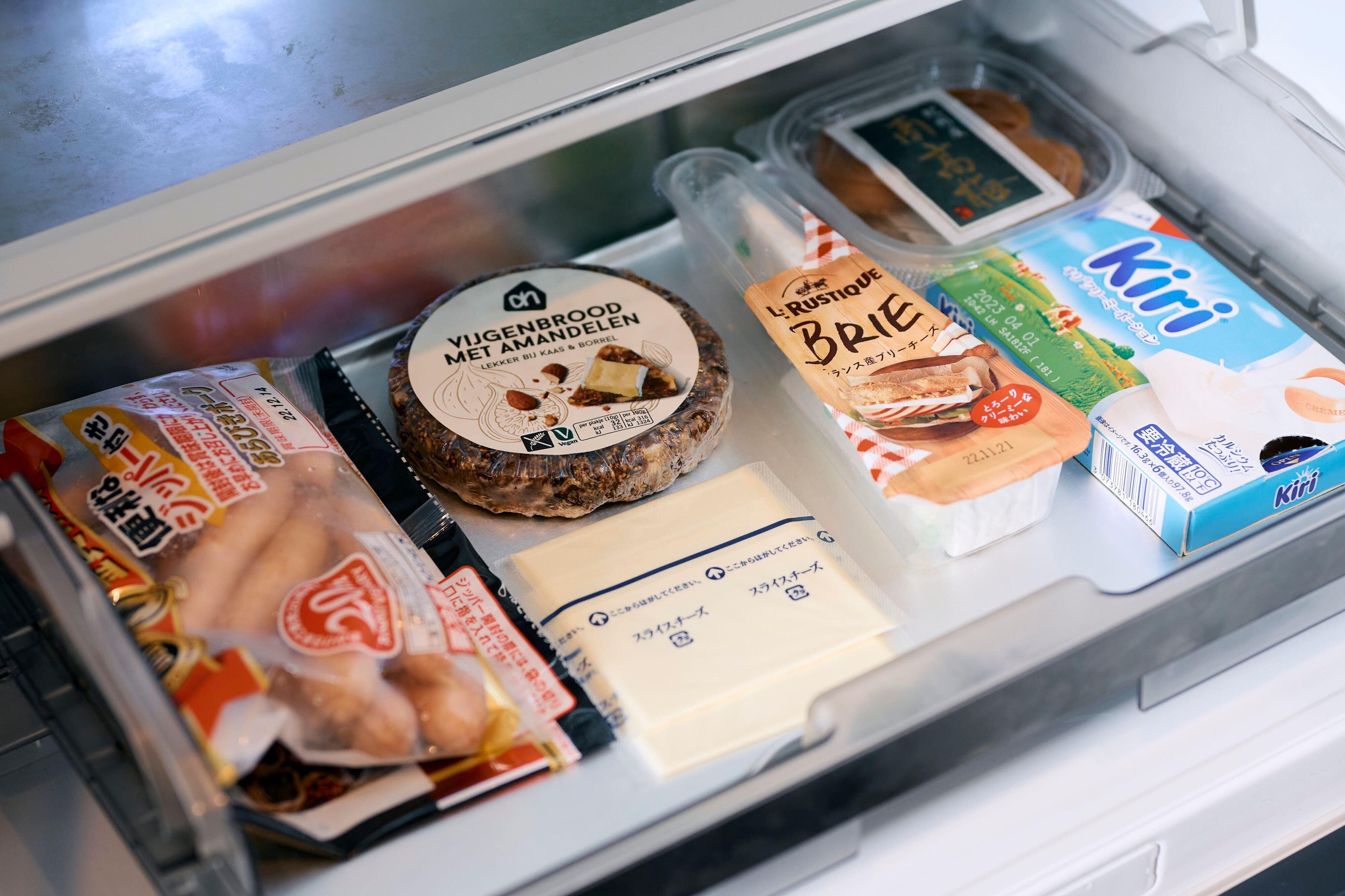 晩酌用のチーズなど、2人の大好物を常備。平置きできる分量だけと決めて、買いすぎを防止。