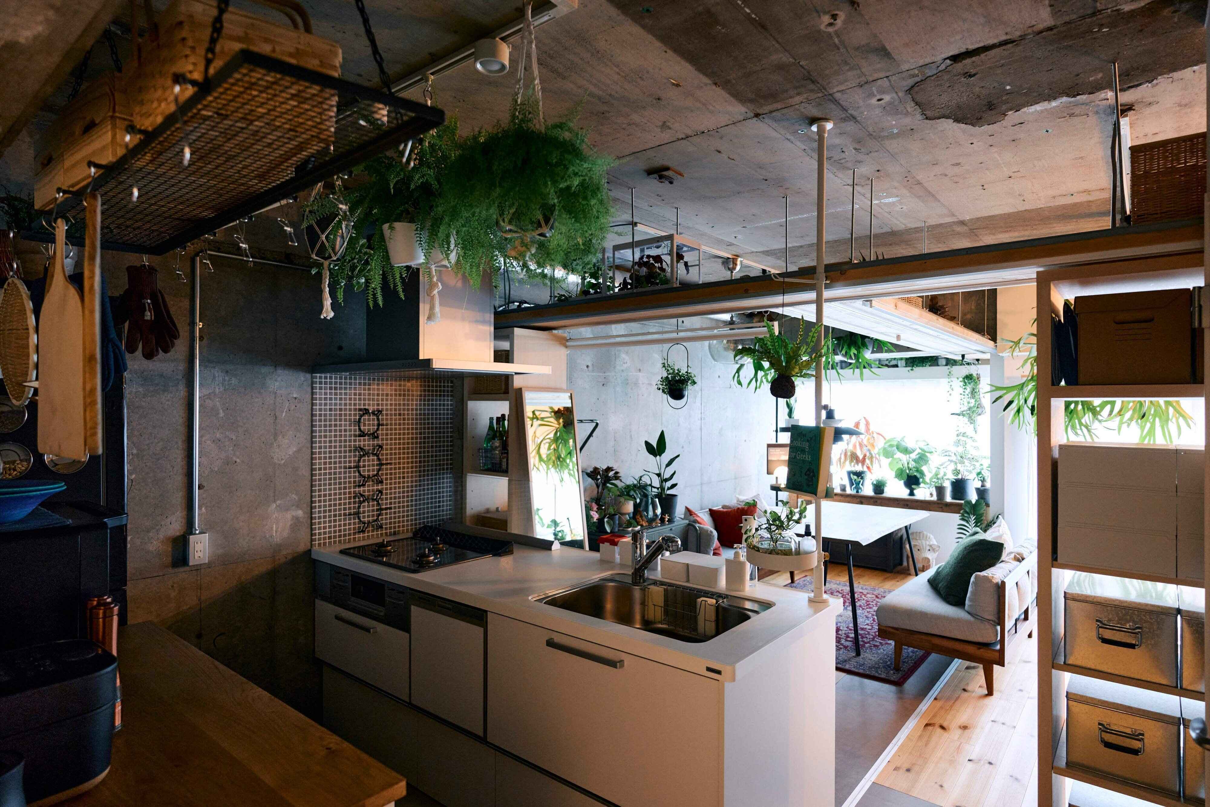 「家を購入する決め手の一つだったキッチンは、部屋の中心にあって壁もなく開放的。広くないからこそキッチン用品や収納を厳選していて、お気に入りに囲まれた大好きな空間です。