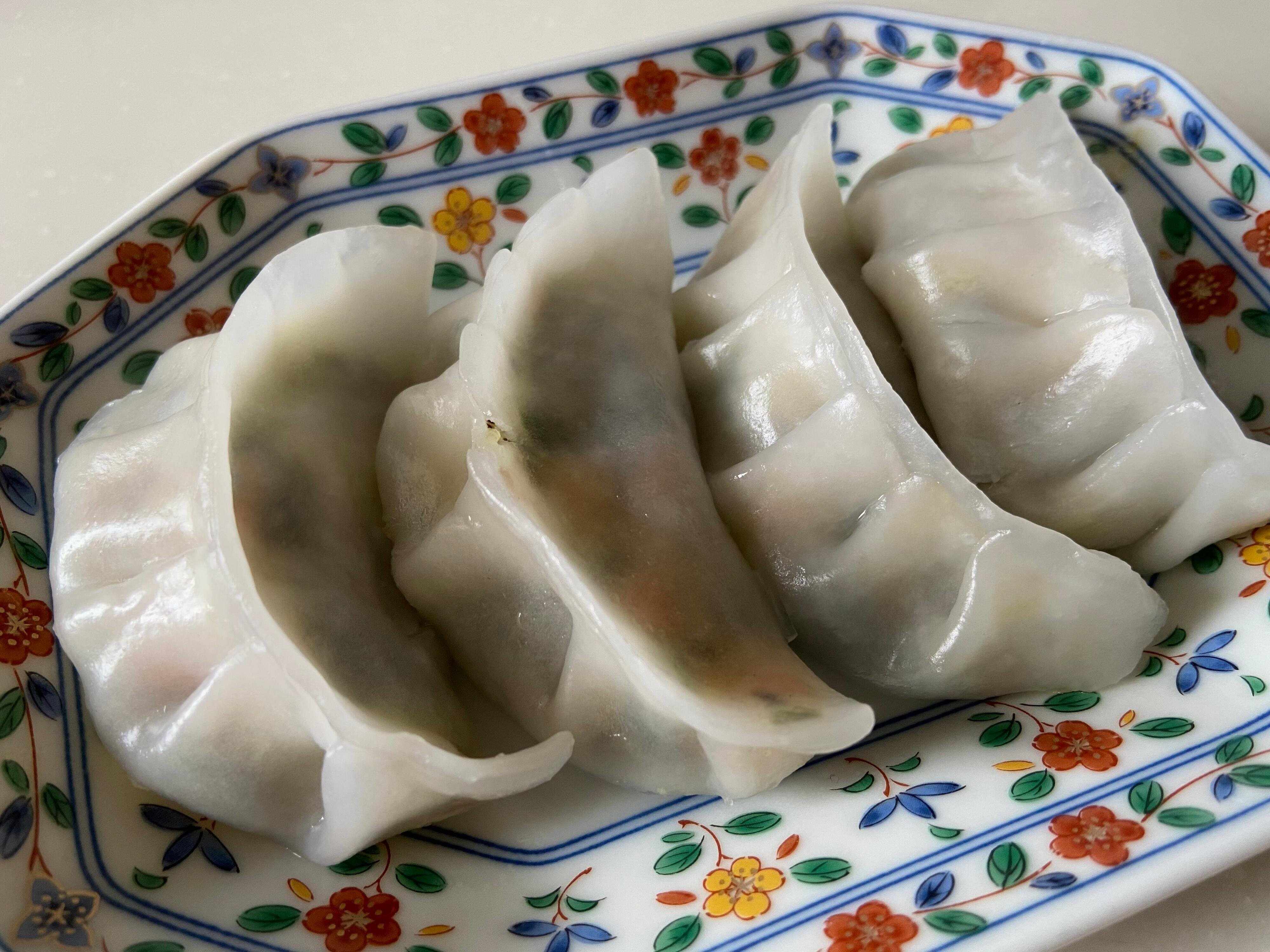 具がみっちり詰まっているからか、取り出すときに破けやすく慎重に盛り付けました。皮が少し透明になりぷるんとおいしそう。