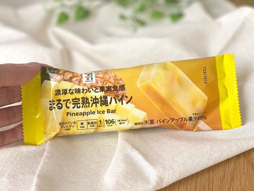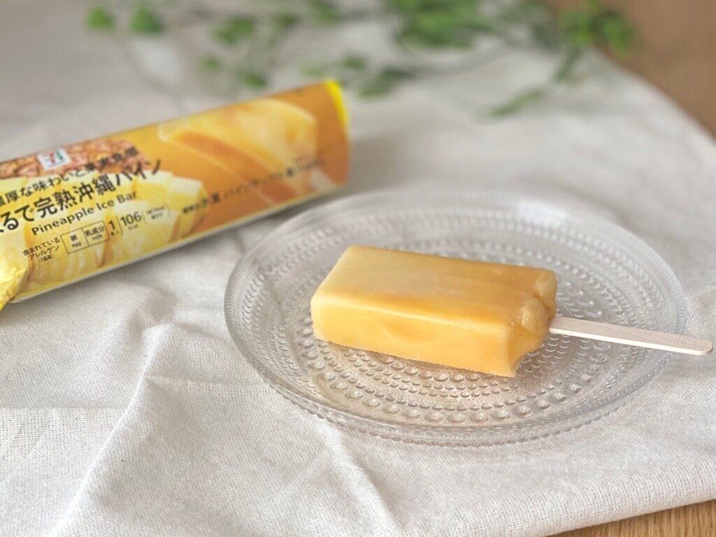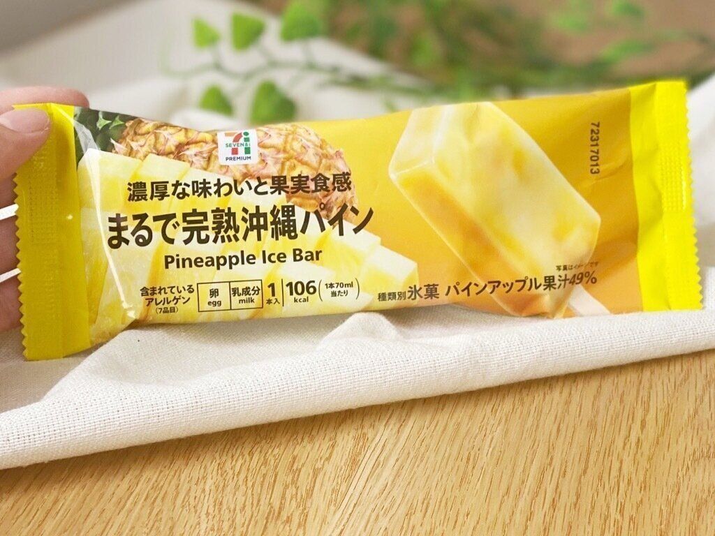 パイナップルの味をしっかりと堪能できる「まるで完熟沖縄パイン」。159円で買えるとは思えないクオリティの高い商品で、買って大正解でした。セブンイレブンの「まるで」シリーズは、季節ごとにさまざまなフレーバーが登場しますが、どれも本格的な味わいでオススメですよ。