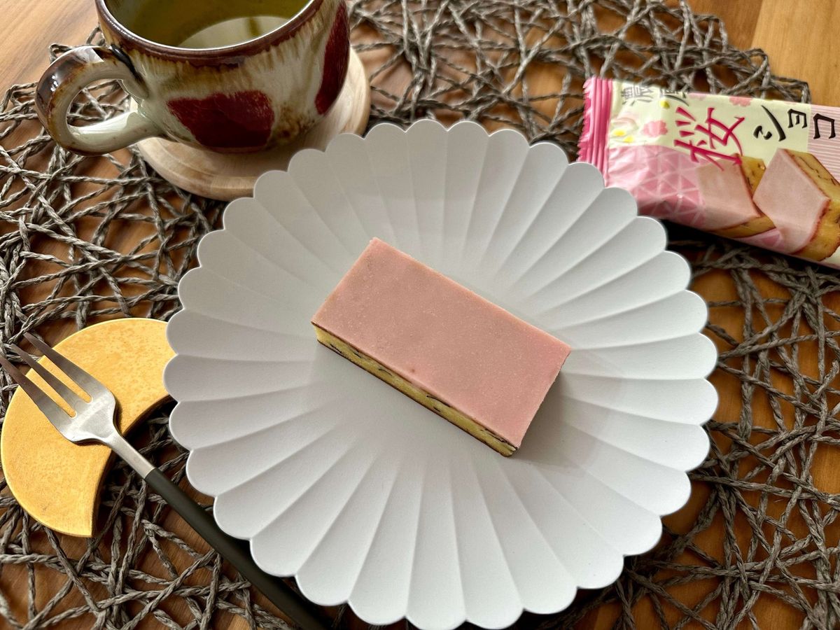 生地はずっしりしっとりした質感。食べる前は桜の甘い香りがしましたが、食べてみると桜の葉の塩味がしっかりと効いており、甘くて濃厚なお味の中で良いアクセントになっていましたよ。