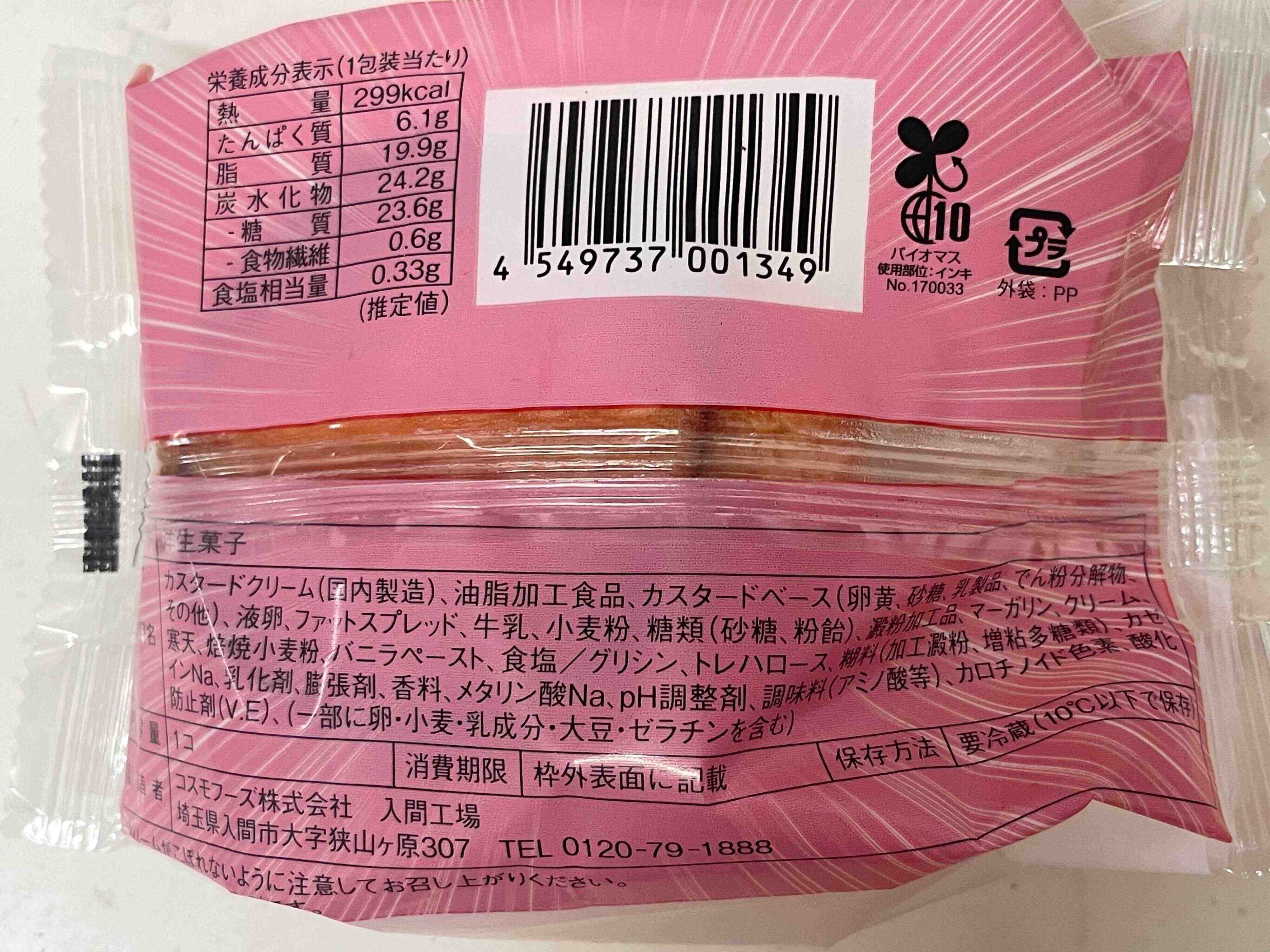 原材料を見ると、カスタードクリームが一番多く入っていることが分かり、テンション上がりました♪