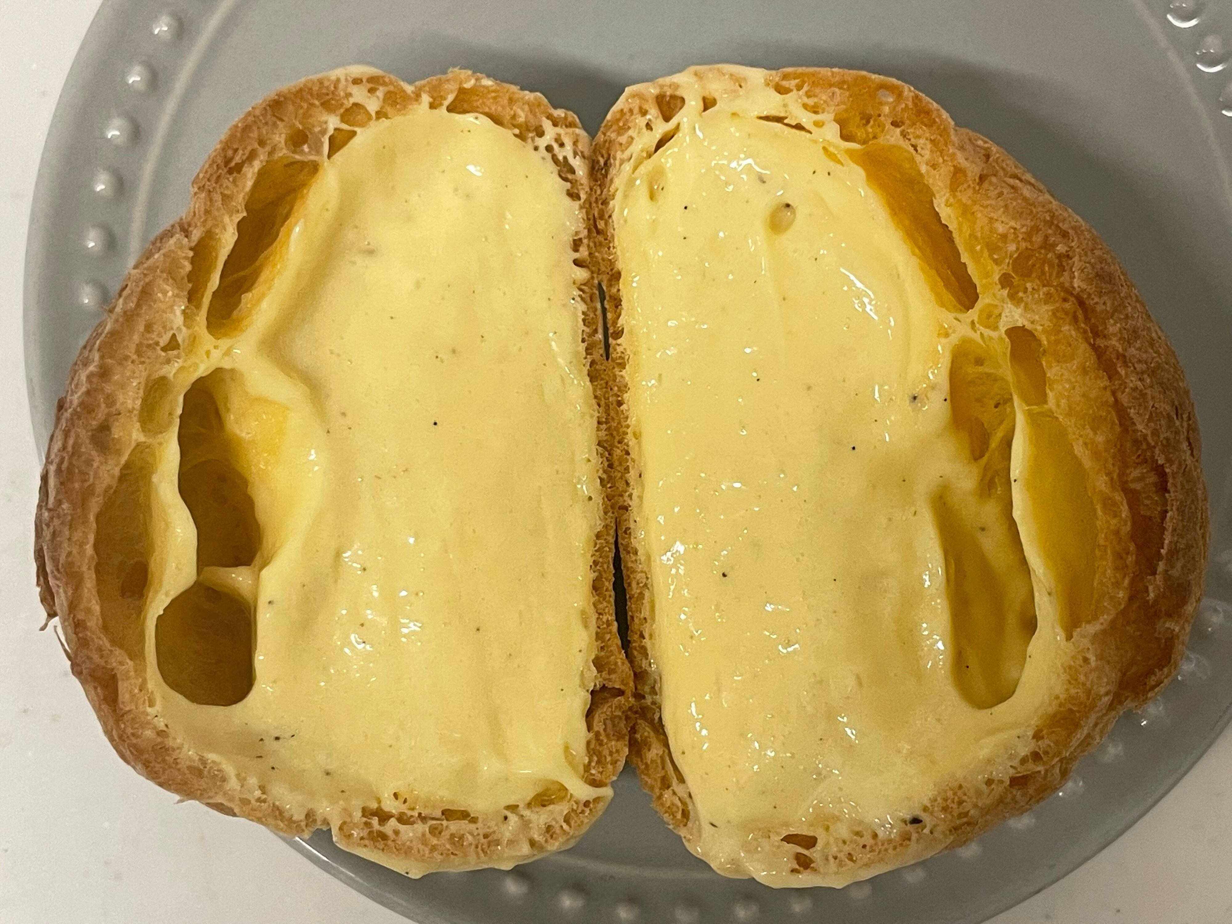 中のクリームはコクがあって、バニラビーンズが入っていて風味がいいです。
