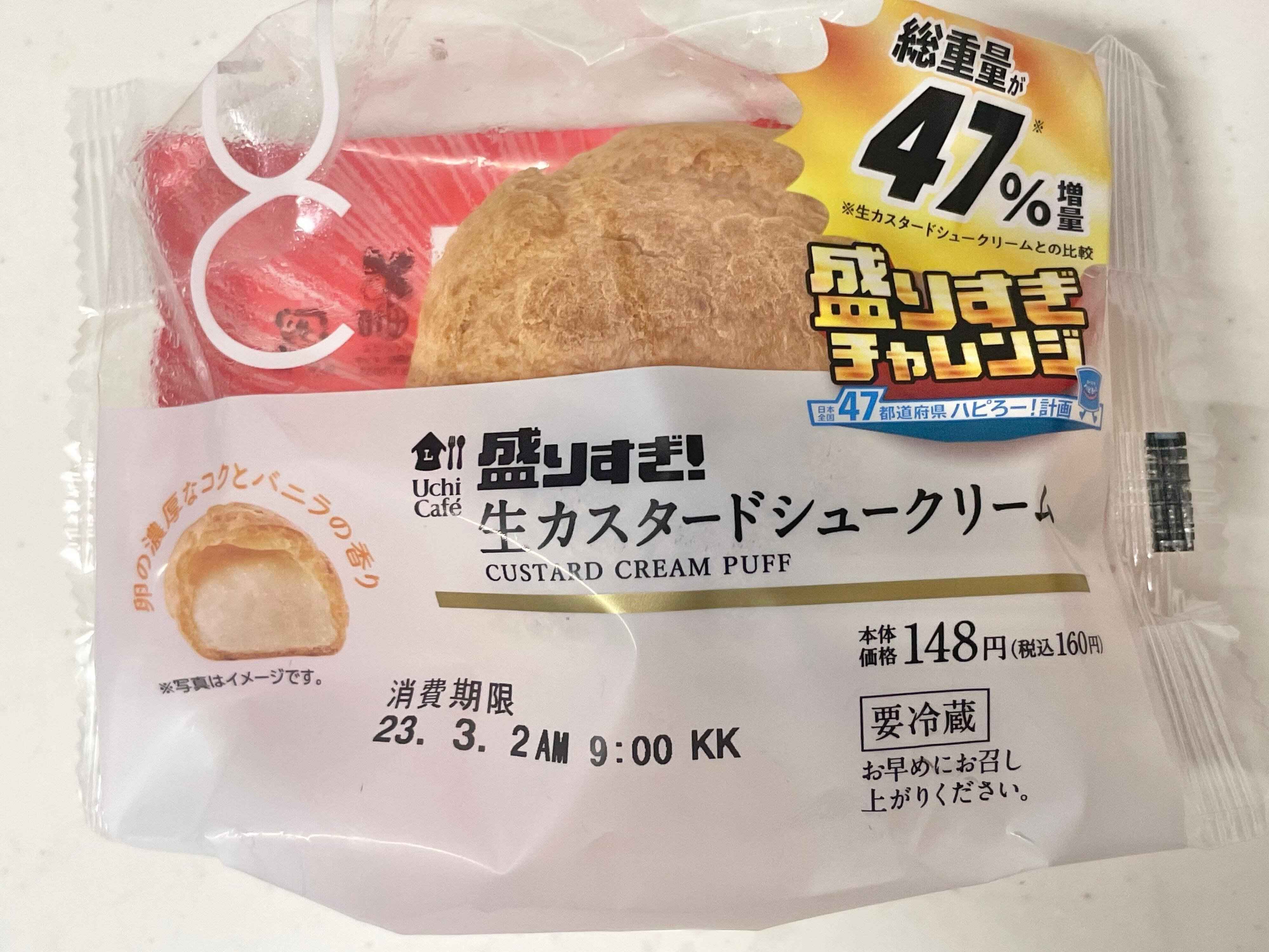 なんて思っていたら2月20日(月)より発売された「盛りすぎ!生カスタードシュークリーム」に奇跡的に出会えることができましたので、さっそくご紹介します。