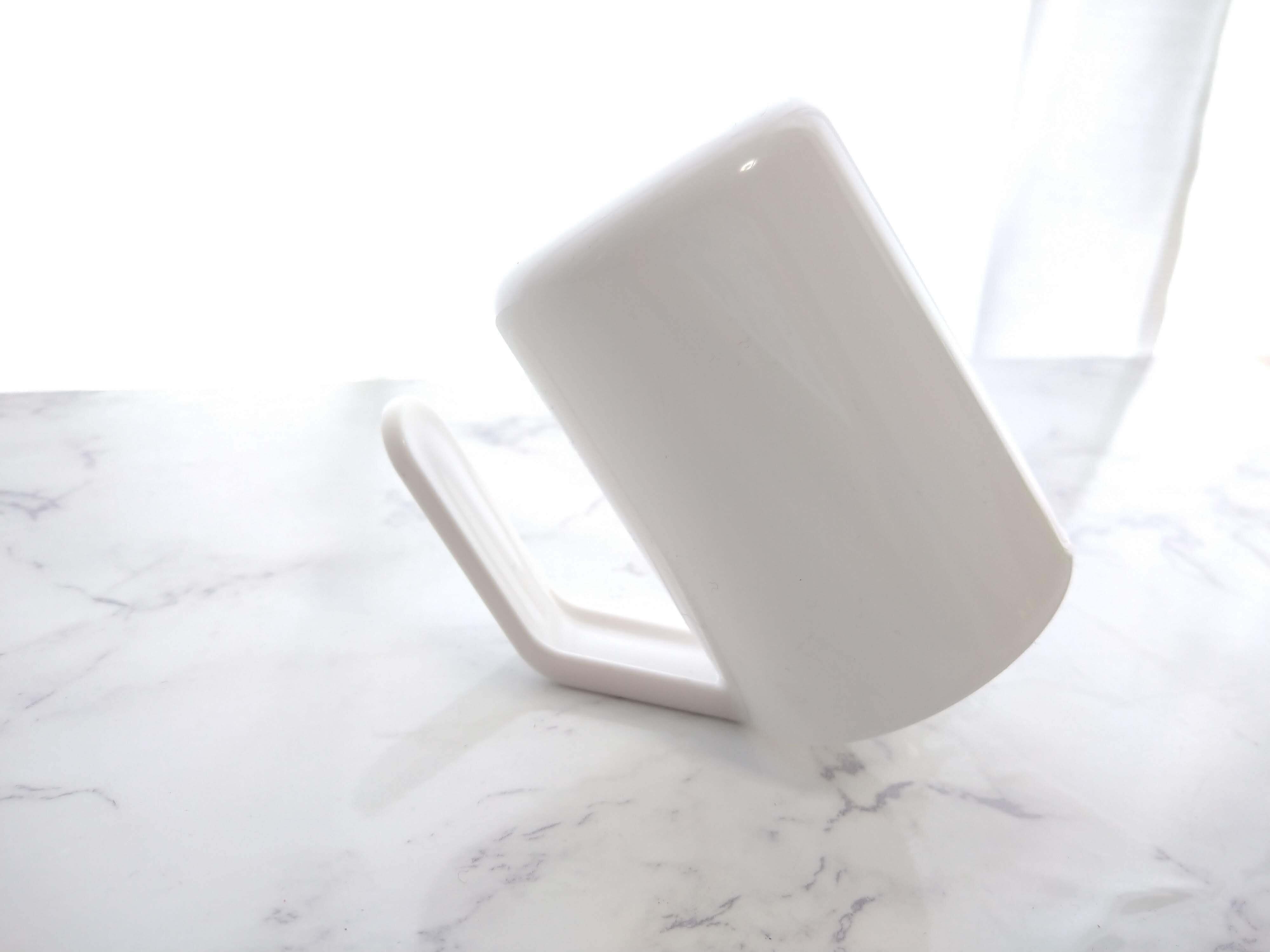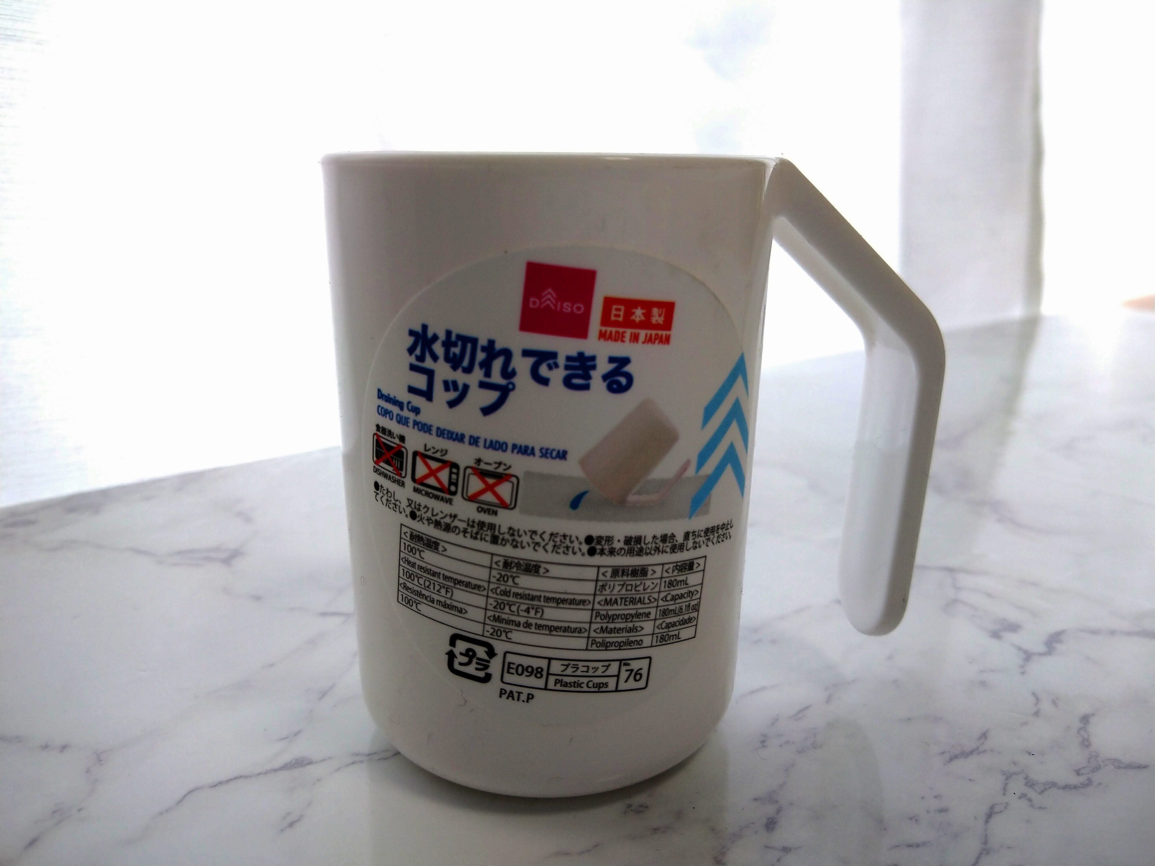 しかし、このコップは持ち手に角度があり、ここを下にして置くだけでコップのフチを浮かせた状態で水切れができるのです。