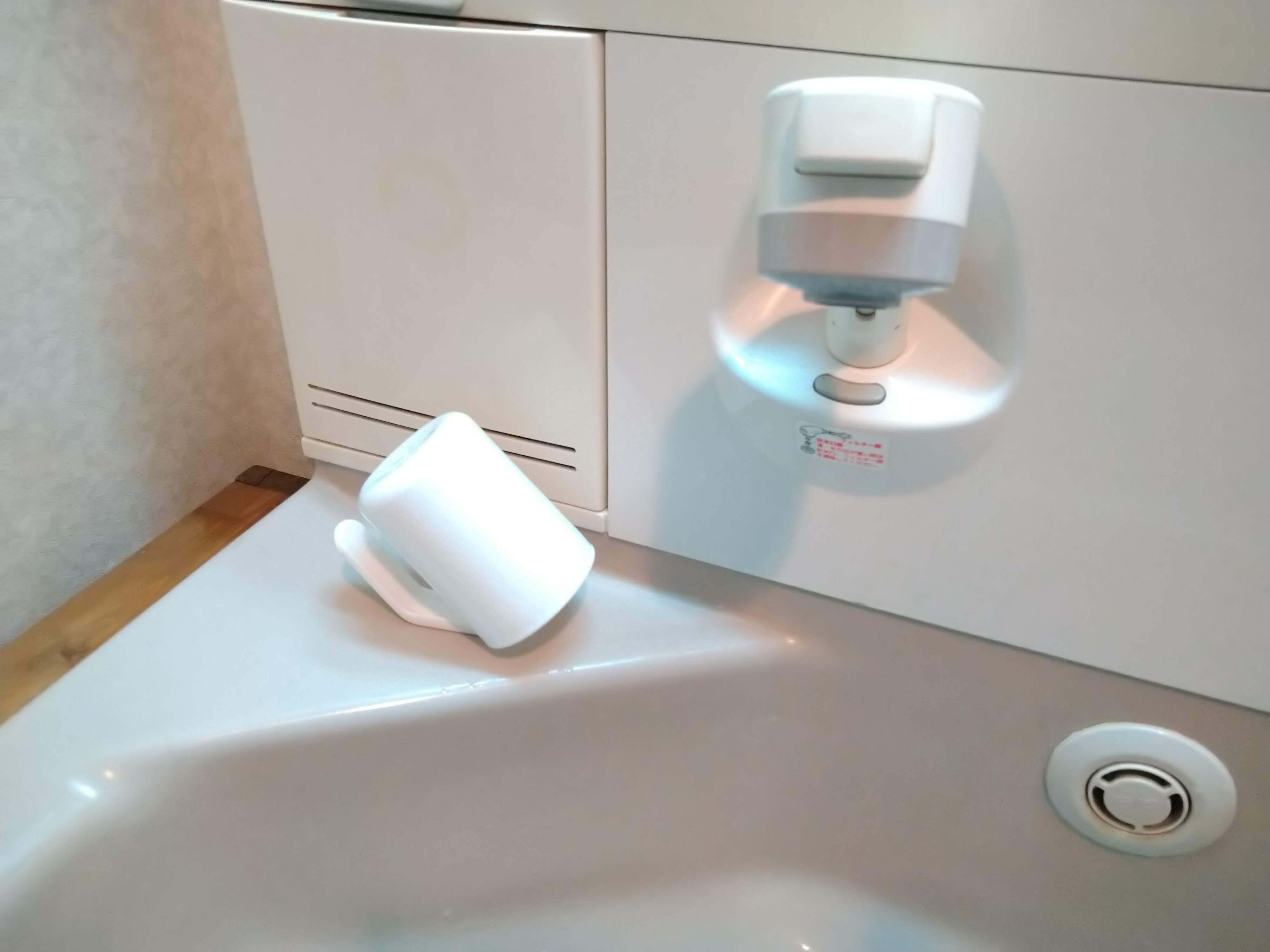コップを水切りしようと逆さまにして置くと、コップのフチが洗面台に密着し衛生が保てません。