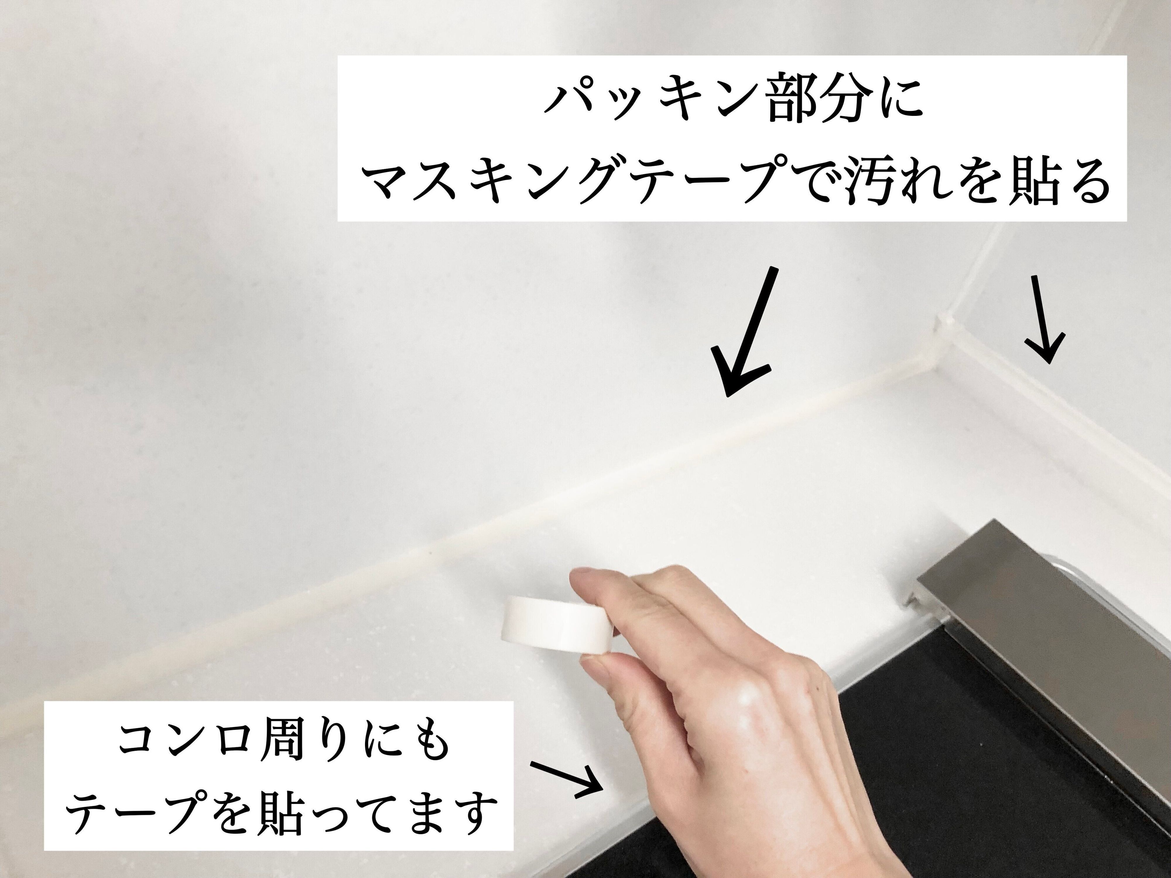 パッキン部分やコンロ周りにテープを貼る