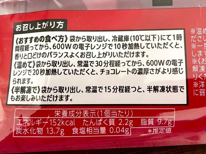 常温で30分解凍し、さらに600Wの電子レンジで20秒加熱