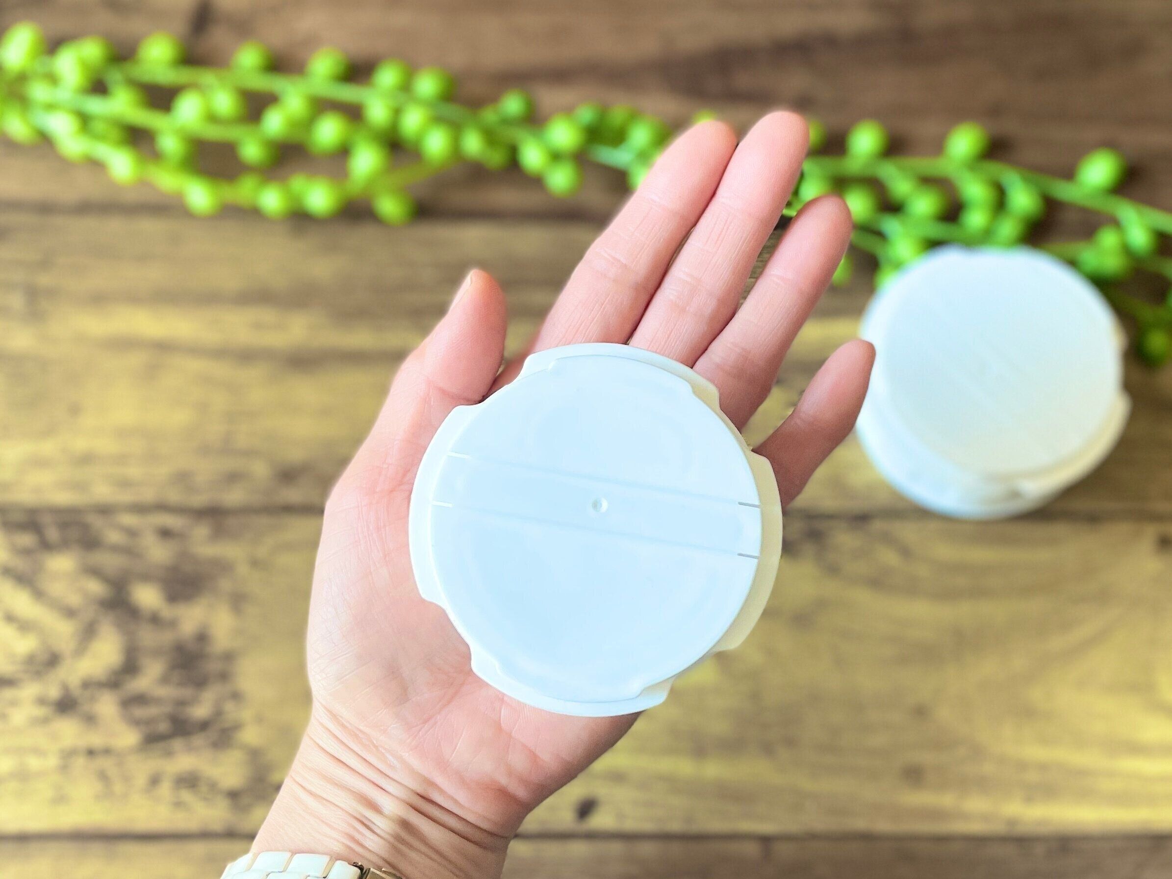 今までの袋キャップがだいたい3~5cmくらいだったのに対して、このキャップは直径約7.6cmもあるんです。