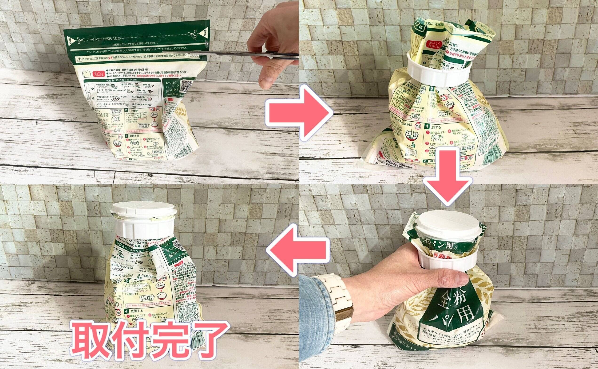 100均で買える人気のキッチングッズに「粉類の袋に付けられるキャップ」がありますよね。袋のままでも開け閉めがしやすく便利なのですが「もう少し大きかったらいいのに~」と思ったことはありませんか?