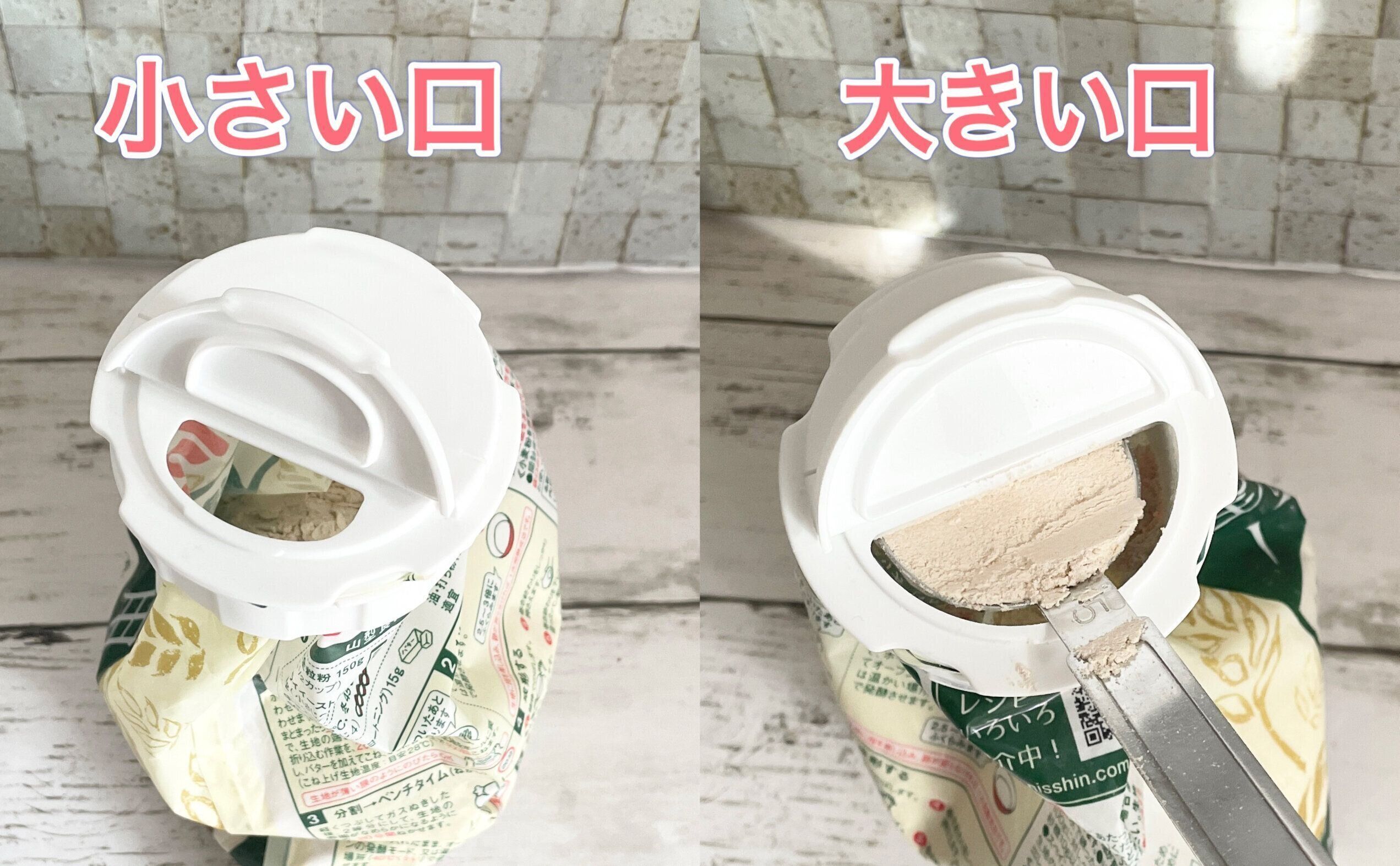 今までより大きい!「粉もの袋キャップ」