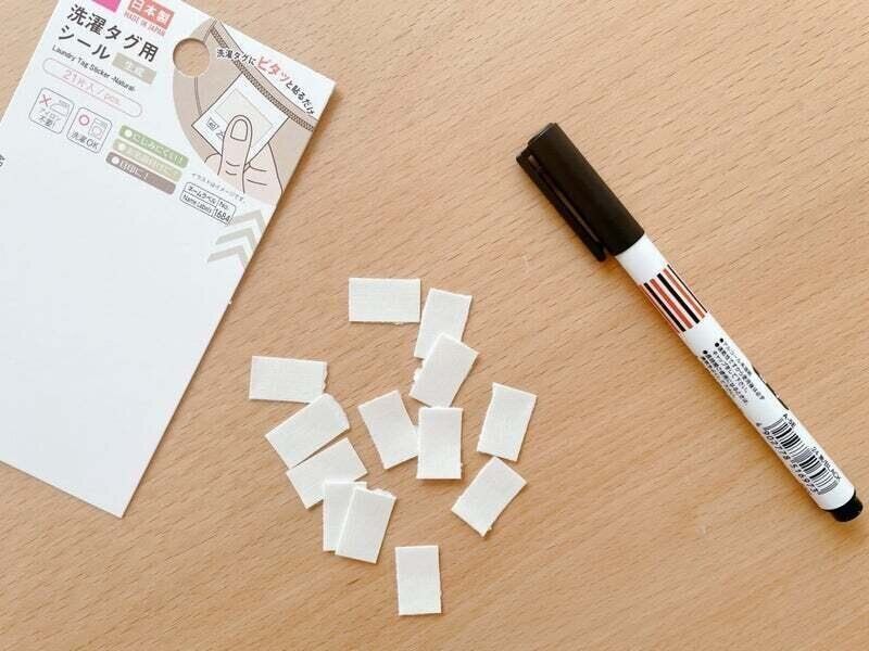 21片に切り込みが入っています。簡単に手でちぎれて、剥離紙を剥がして指で強く押さえて貼り付けるだけ!名前つけのハードルを一気に下げてくれるアイテム。我が家は小学校の姉たちにも使うので無地を愛用していますが、可愛い柄ものも多種販売されています。