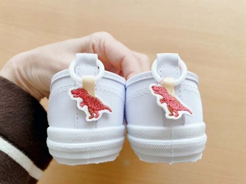 保育園で使う靴や上靴に名前を付けるのは必須ですが、子ども達は色や見た目で自分の物を覚えているのでよく似た靴の子がいると間違えてしまうことも!そんな時にお役立ちなのが刺繍シューズタグ。かかとの紐に通してシューズの目印にするアイテムです。