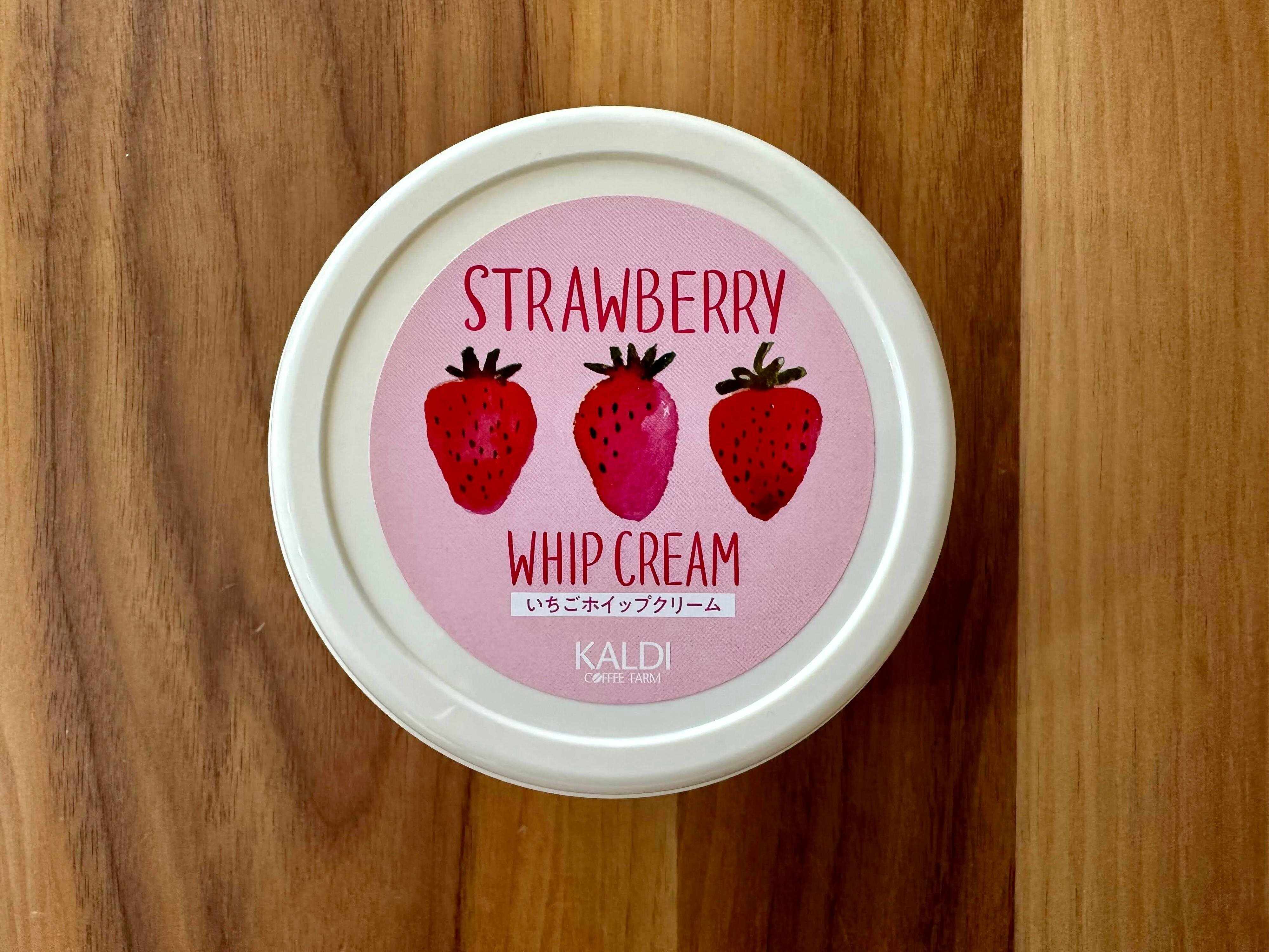 かわいらしい苺味の商品は見ているだけでもワクワクで、ついついたくさん買いすぎてしまいました。中でも今回は、カルディオリジナルの「いちごホイップクリーム」をご紹介します。