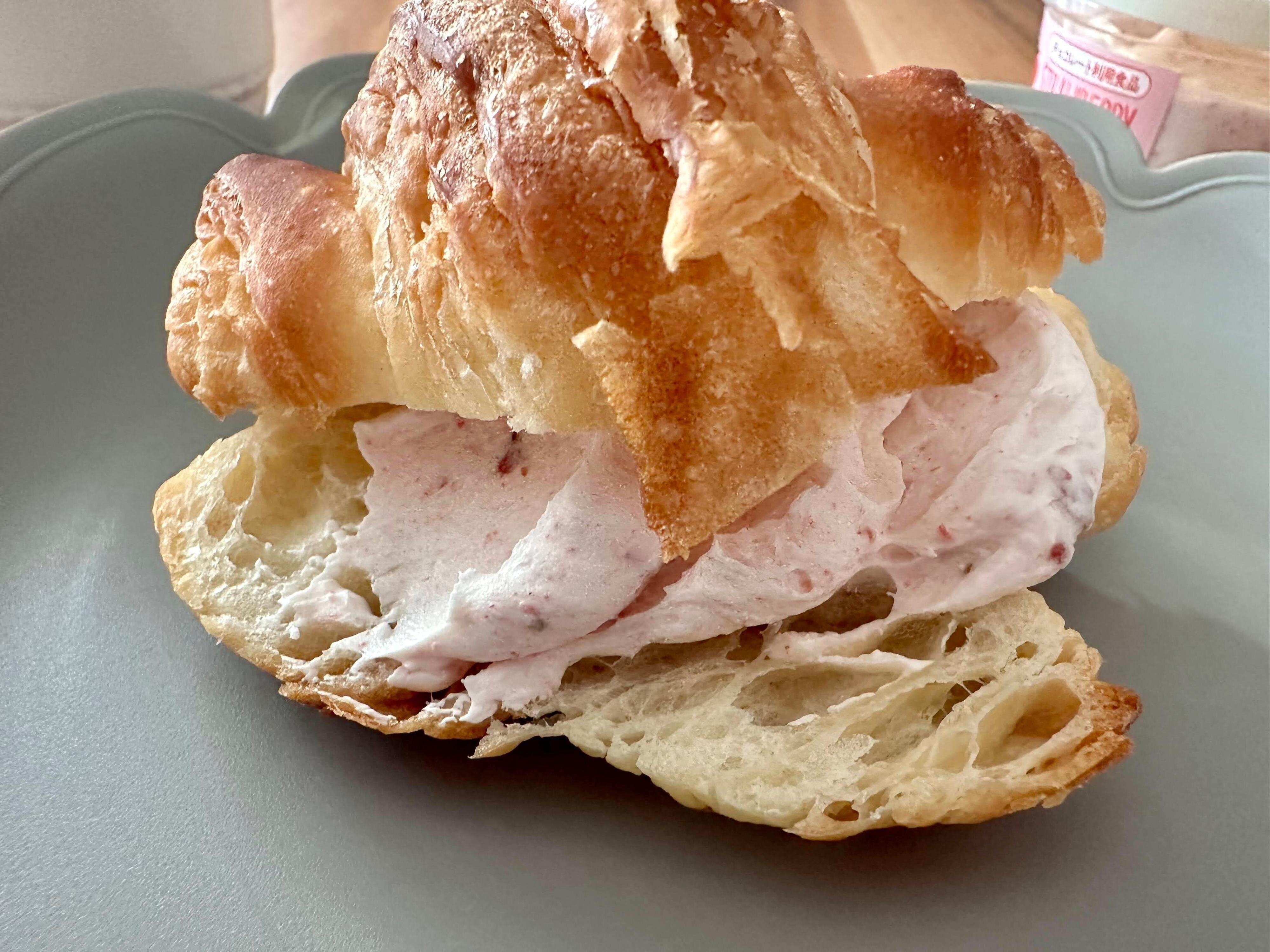 クロワッサンのサイドに切り込みを入れ、いちごホイップをたっぷり塗ってみました。