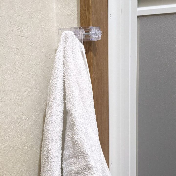 浴室のドア枠に設置して、タオルの一時置きにしたり