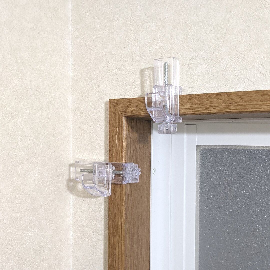 取付可能場所は厚さ10〜50mm、奥行き10mm以上のかもいや窓枠、ドア枠、棚板など。