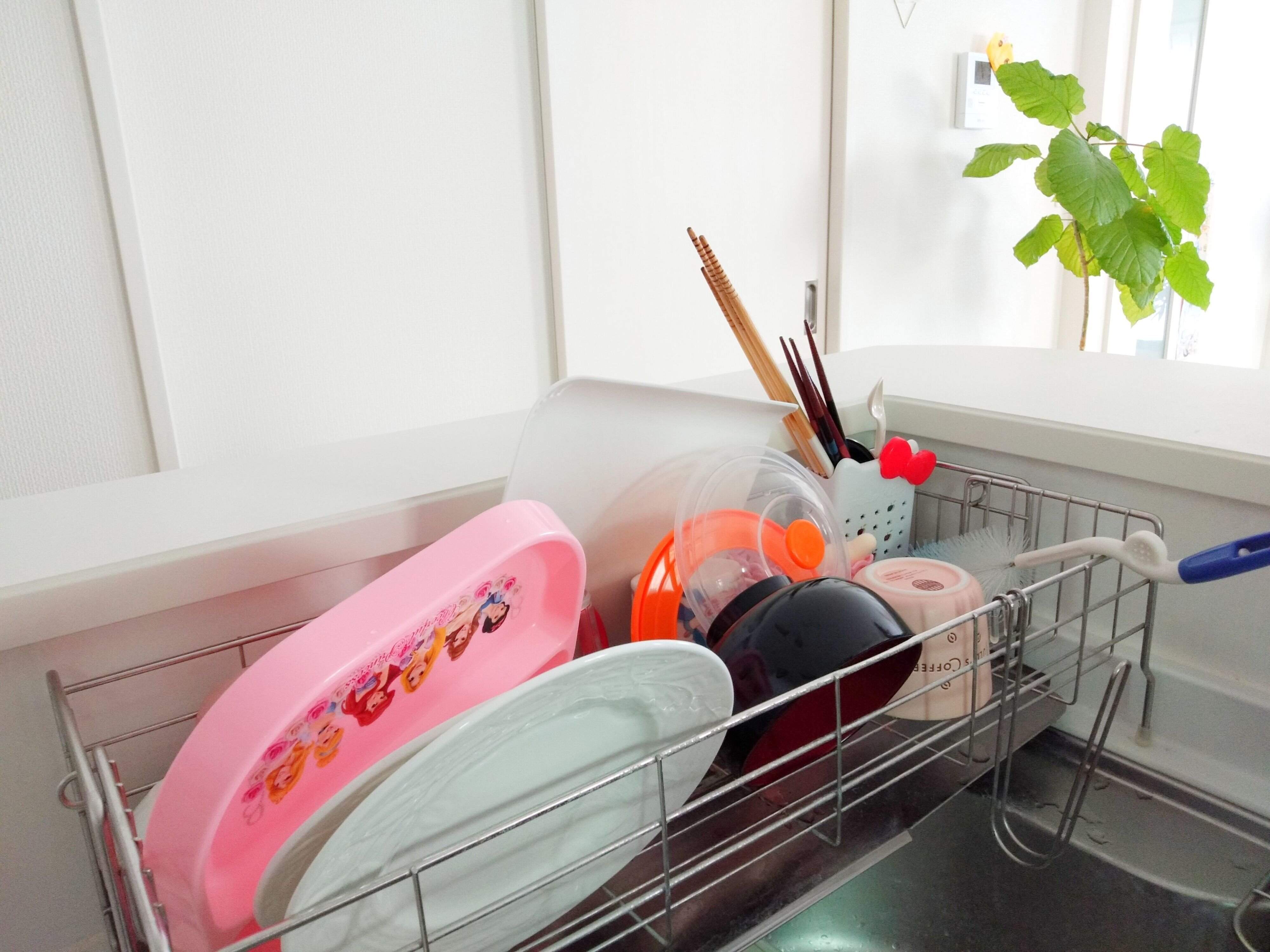 子どもの帰宅後は、給食セットや水筒など、新たな洗い物が出てきます。水切りカゴに食器が残っていると、いつまでもそれらを洗えなかったり、せっかく乾いた食器の上に洗ったものを乗せてしまったりと、悪循環が生じてしまいます。