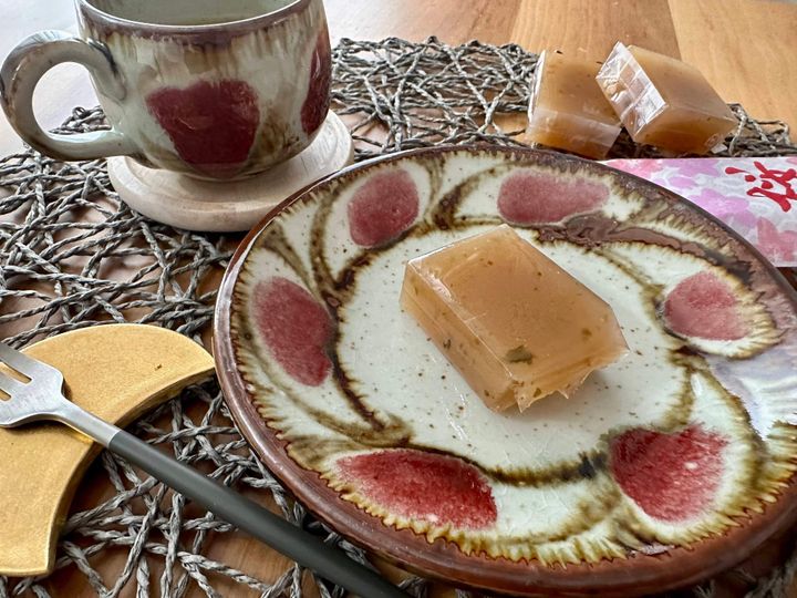 羊羹の中には刻んだ国産桜葉の塩漬けが練り込まれており、ほどよい塩気が甘い羊羹の味を引き締めてくれていると感じましたよ。