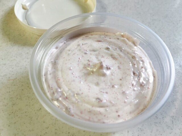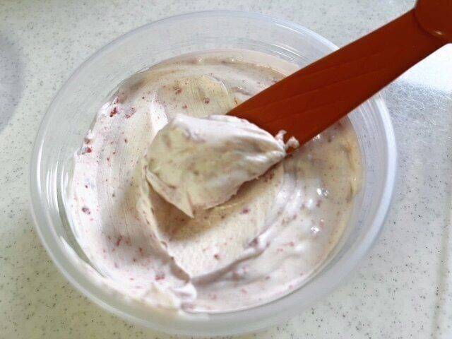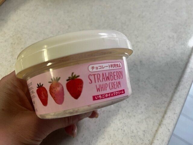 カルディでは度々ホイップクリームが売られていて、わが家もこれまで、チョコミントやコーヒー味など購入してきましたが今回はなんといちご!