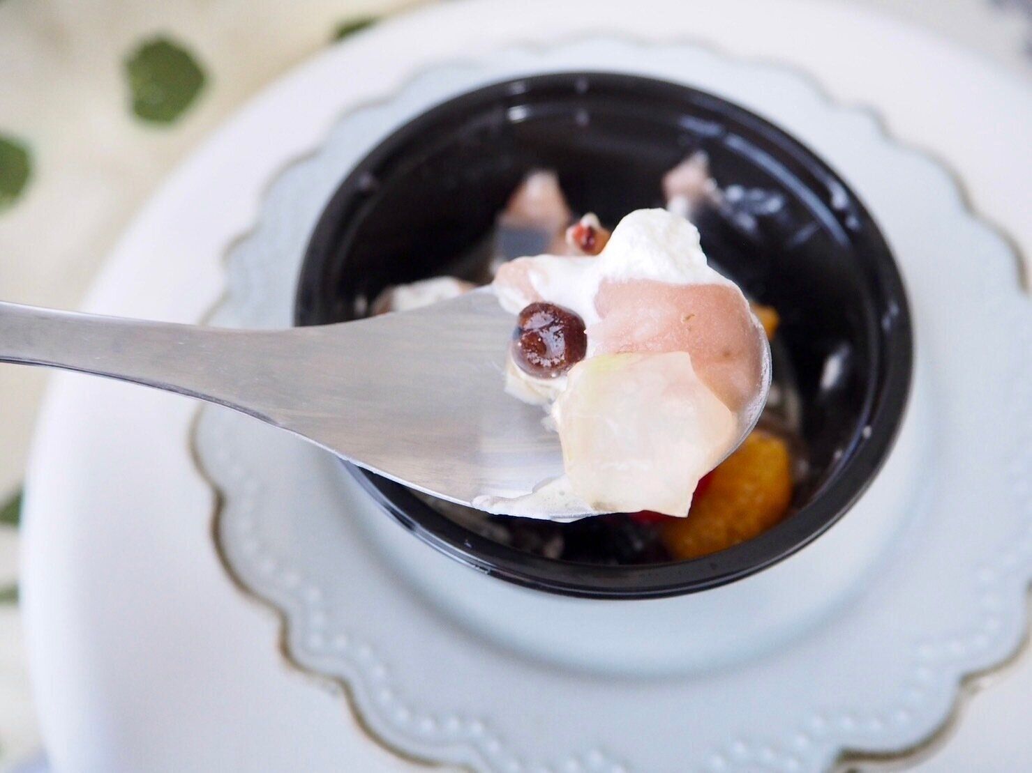 フルーツや寒天、クリームはあっさりと食べやすく、どの食材を組み合わせてくちに運んでも相性が良いので、スプーンの上に少しずつ色んな食材をのせて食べたくなります。