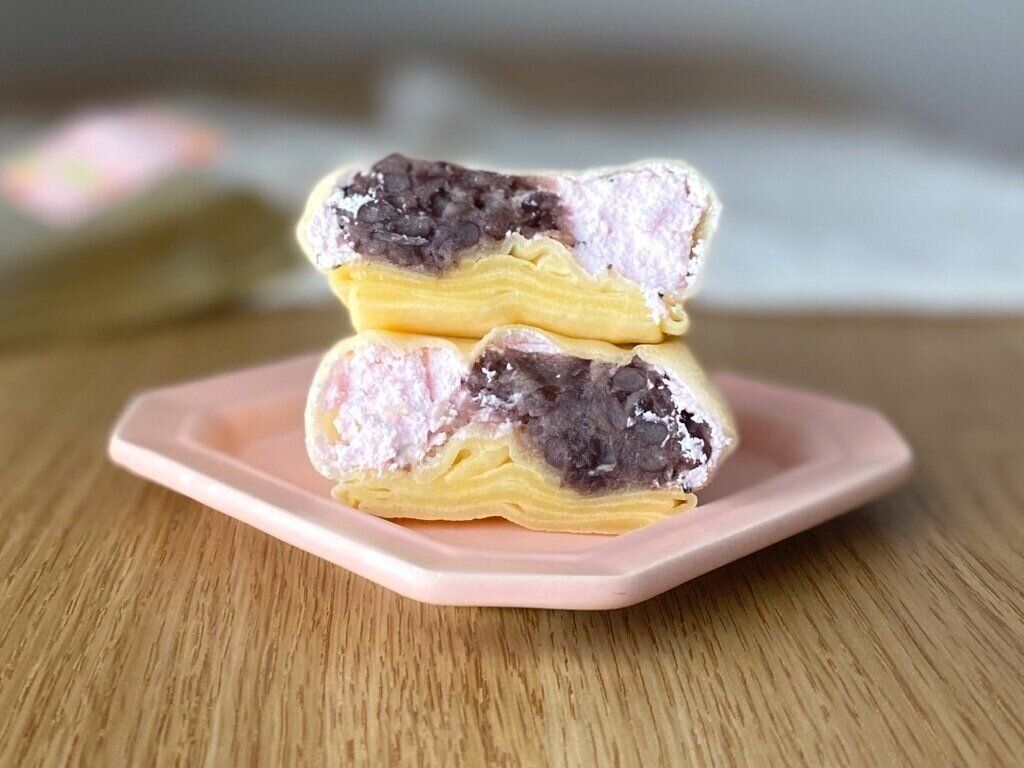 粒あんと桜風味のクリームをクレープ生地で包んだ、和洋どちらのテイストも楽しめるスイーツです。