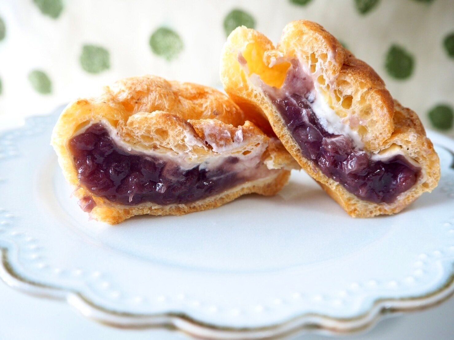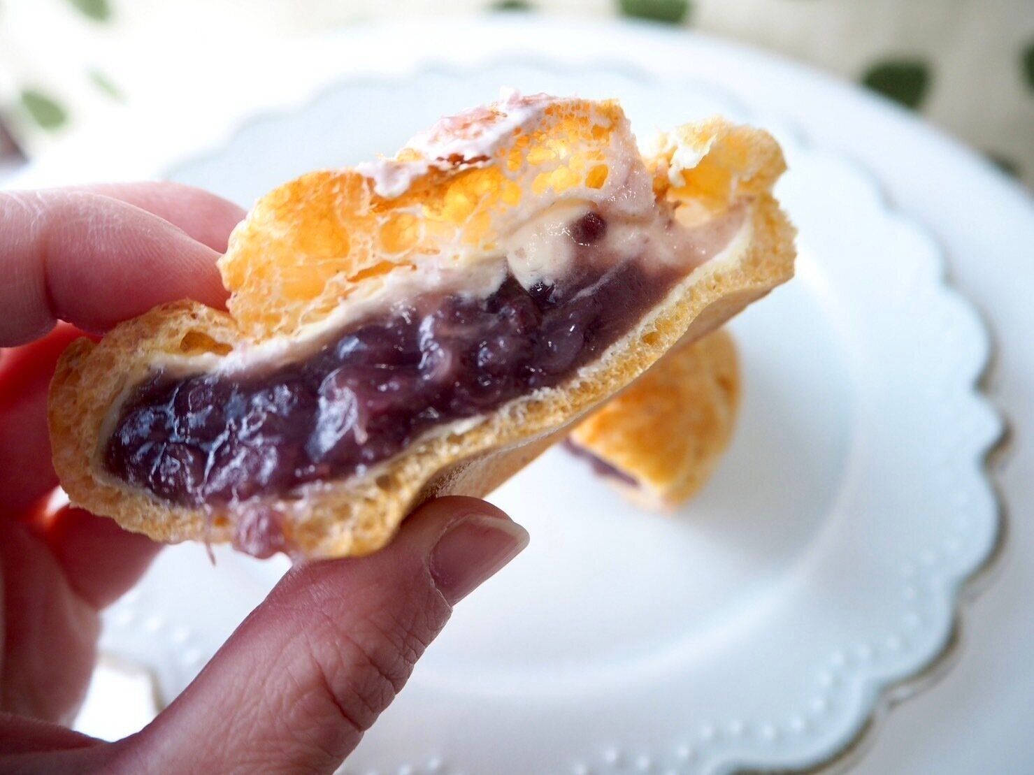 シュー生地の中からたっぷりの粒餡とクリーム!