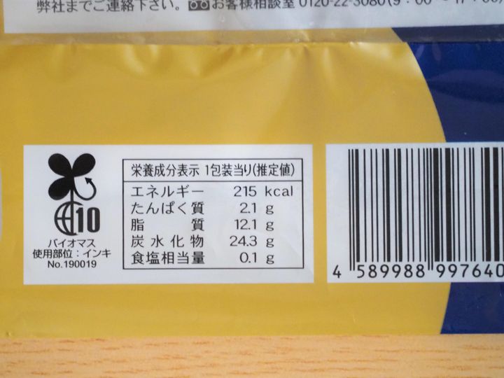 カロリーは215kcalです。なお今回購入したものの消費期限は、購入日を含む4日でした。