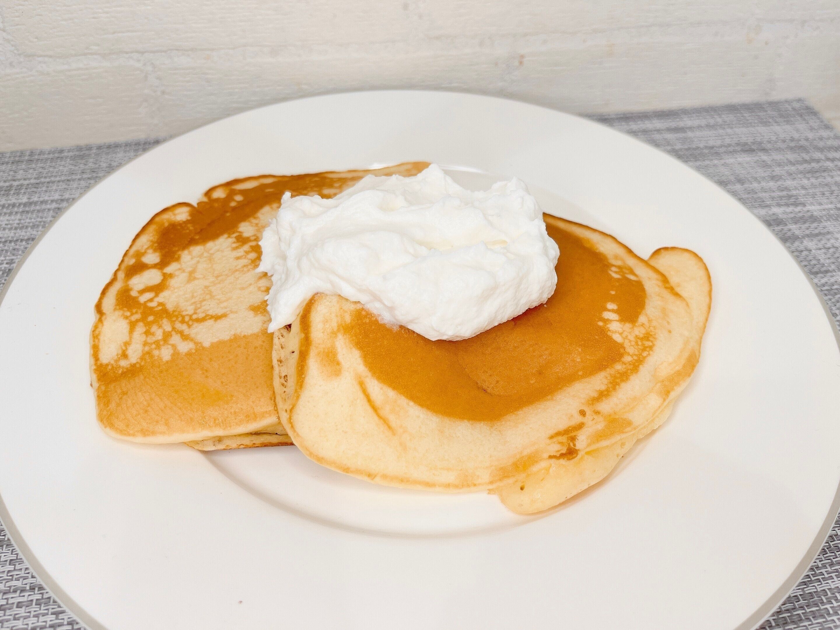 生地を甘さ控えめで焼き、ホイップをのせ朝ごはんに出したら子どもたちは大喜びでペロッと完食!