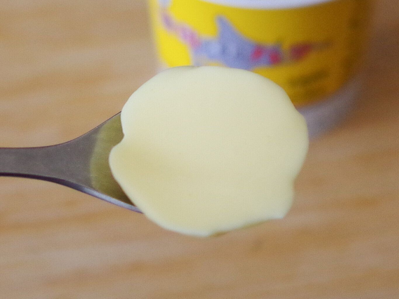 開けてみると、ツルンとなめらかな表面。やや黄色が薄めのプリンですね。