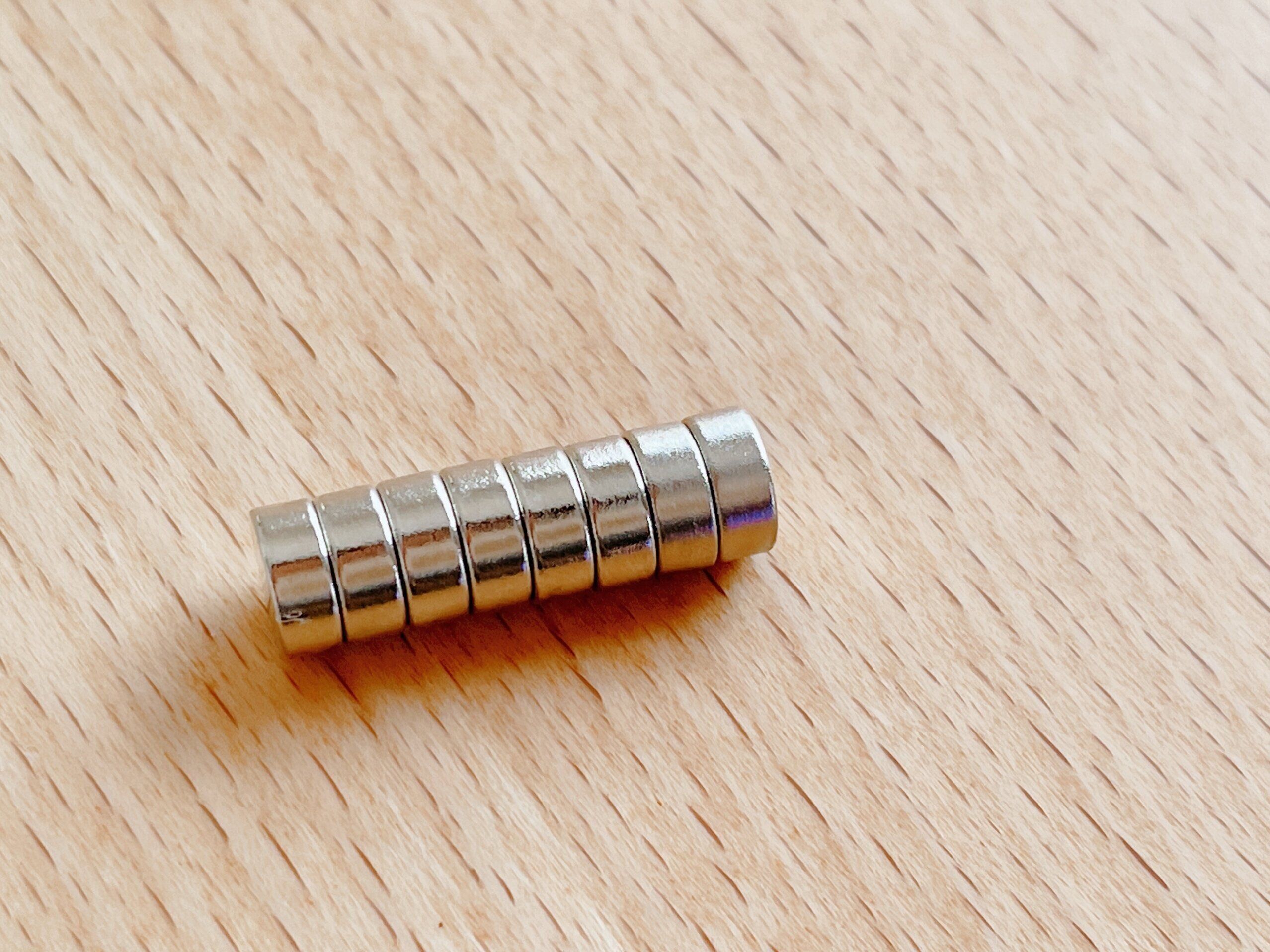 そんな収納を簡単に実現してくれるのがダイソーの「超強力マグネットミニ・8個入り(110円)」。一般的な磁石よりも非常に強力で、一度貼りつくと剥がすのもなかなか大変なくらいの磁力です。