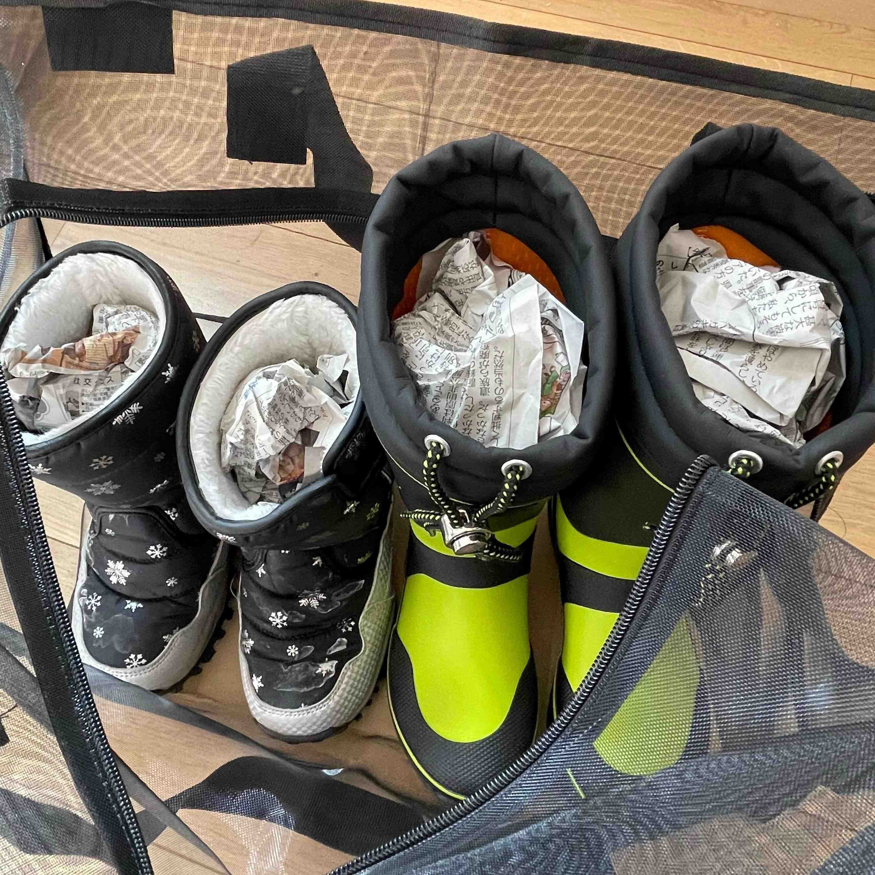 他の靴が汚れないように、緩衝材を間に敷けば、ショートタイプのスノー靴2足も収納することができました。