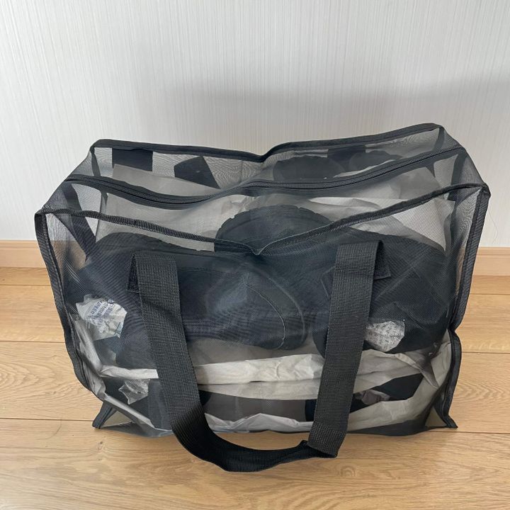 プラスチックケースやビニールバッグだと湿気がこもりやすくカビが心配ですが、通気性の良いメッシュバッグなので、神経質になりすぎずに保管できます。