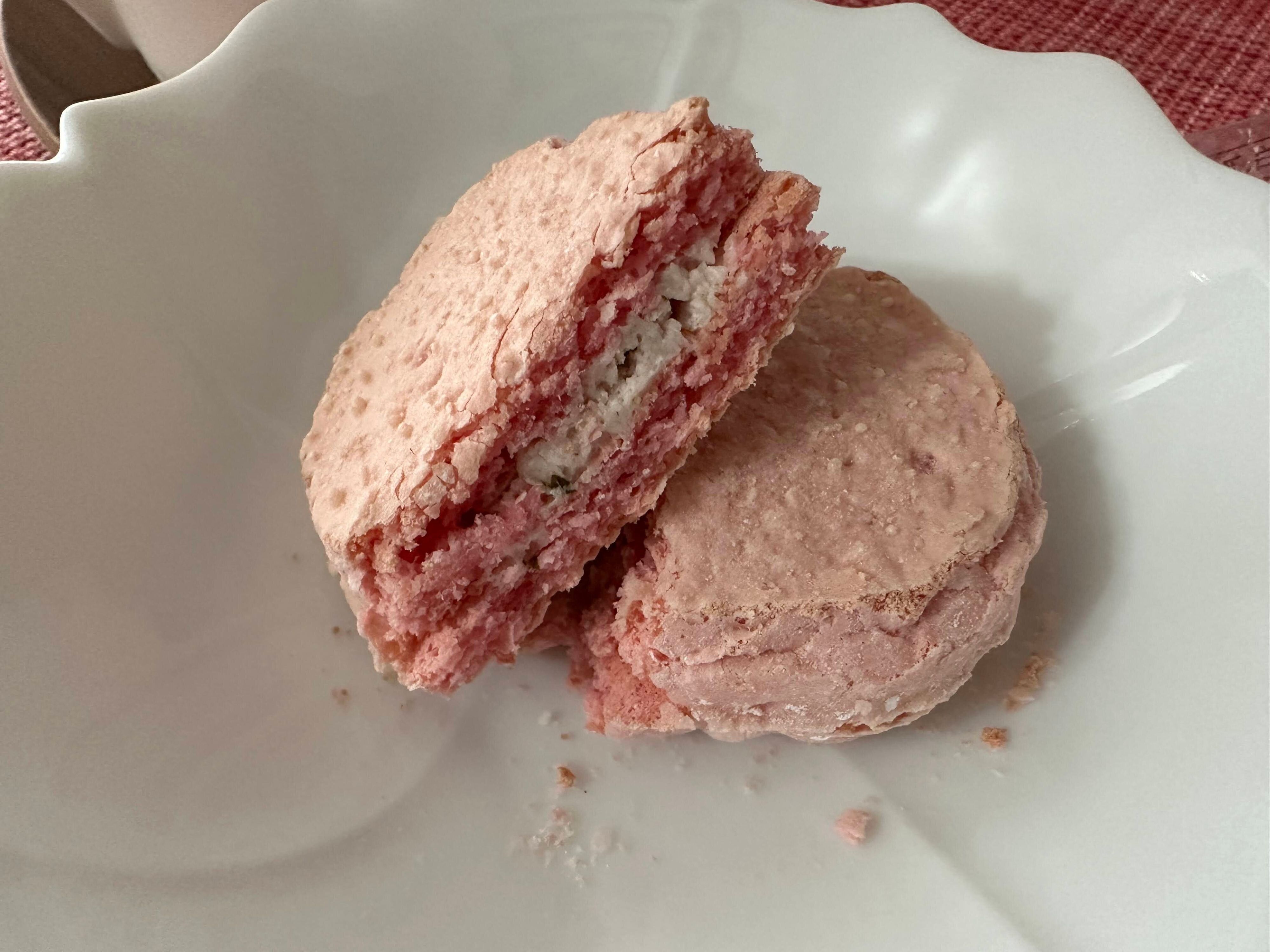 ダックワーズ自体はしっかり甘めですが、中のクリームに入った桜の葉から程よく塩味を感じ、甘じょっぱさがヤミツキになります。