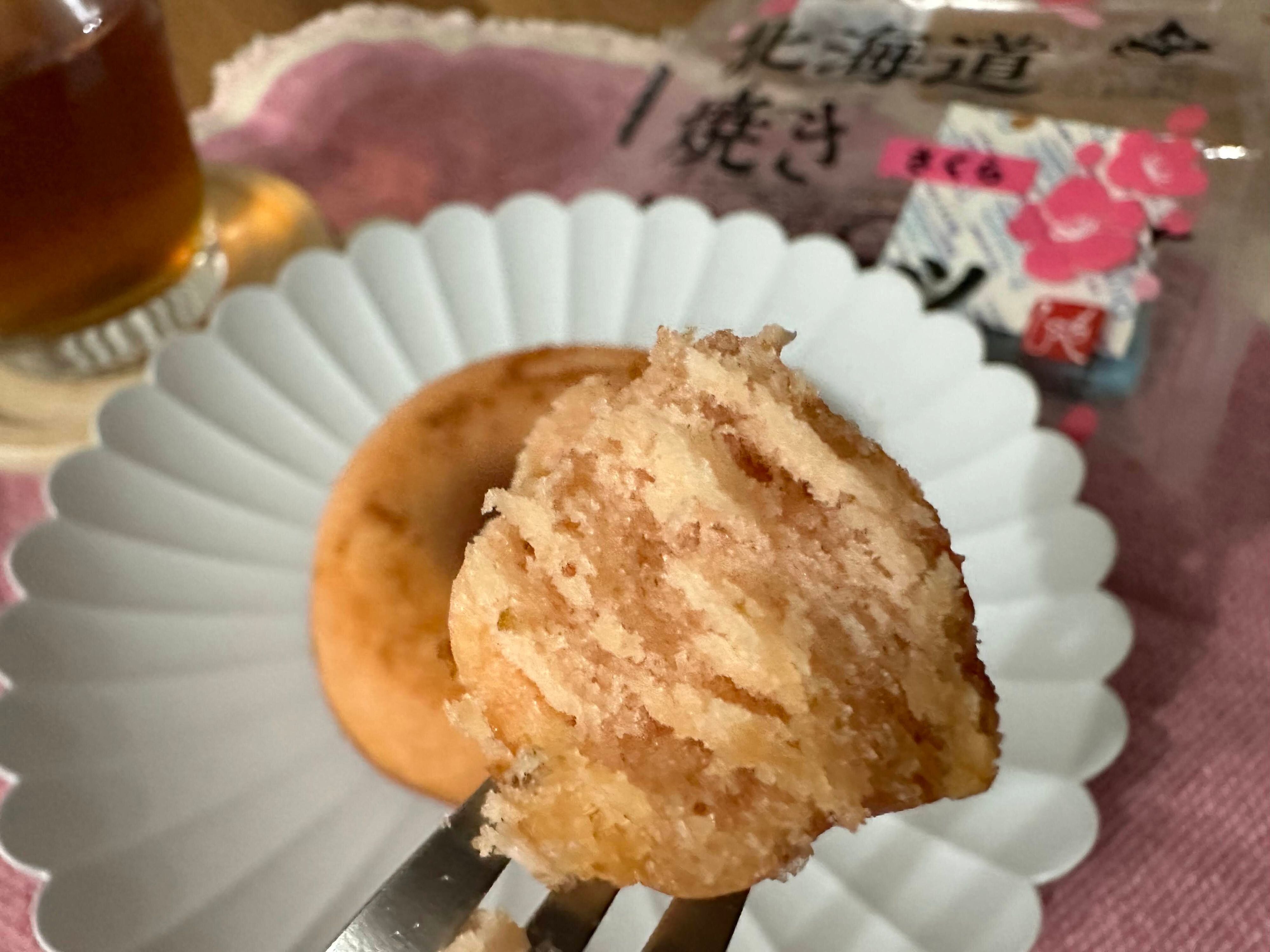 袋を開けると桜餅のような甘じょっぱ〜いよい香り。ほんのりピンク色がかわいらしい生地には美しい焼き色がついています。
