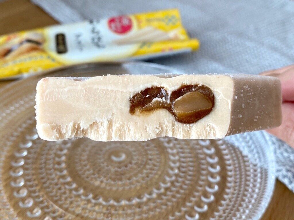 アイスとは思えない和の味わいと食感はまるでスイーツを食べているよう。全体的に甘さが抑えられているのでそれぞれの素材の味をしっかりと楽しめます。個体差はあると思いますが、最後に黒糖わらびもちがたっぷりと入っている部分があり、たまらないモチモチ感を堪能できました。