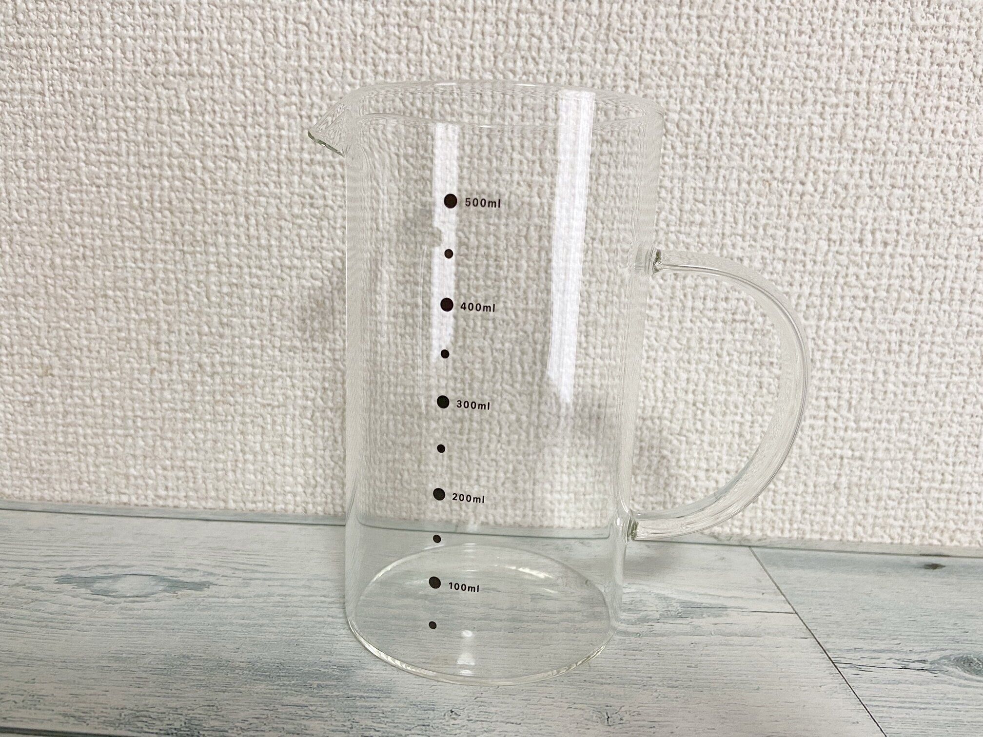 計量カップはお料理をする際によく使うアイテムなのですぐに手に取りやすい場所に置いている人も多いですよね。筆者もしまい込まず、料理中にさっととれるように出しっぱなしにしていることの方が多いです。この「耐熱ガラス計量カップ」はナチュラルなインテリアにも合うおしゃれなデザインなので出しっぱなしにしていてもかわいい♪ずっと“THE 計量カップ!”なデザインのものを使っていたので、かわいいルックスなだけテンションが上がります。