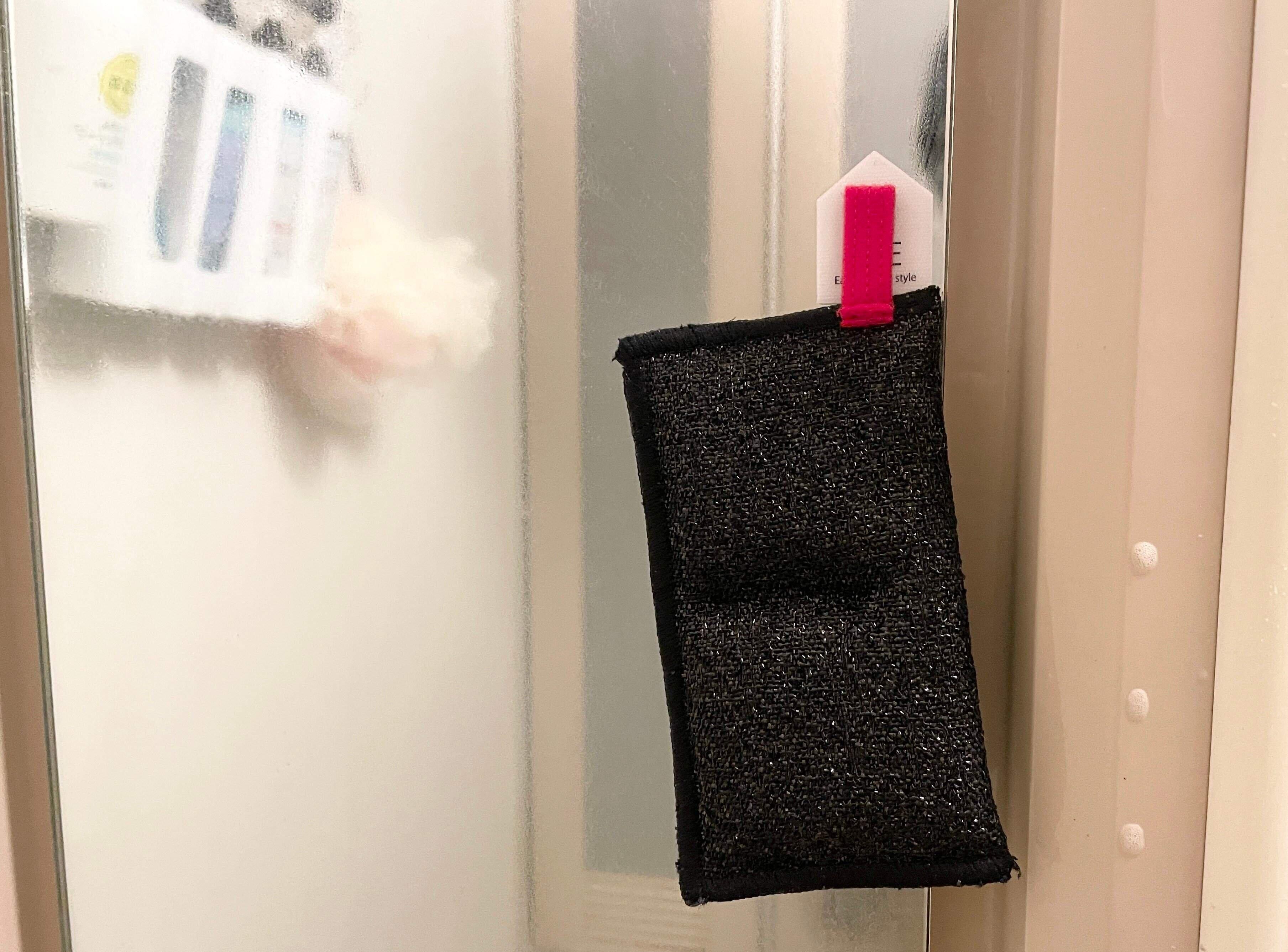 フック付きがうれしい「浴室の小物洗いスポンジ」