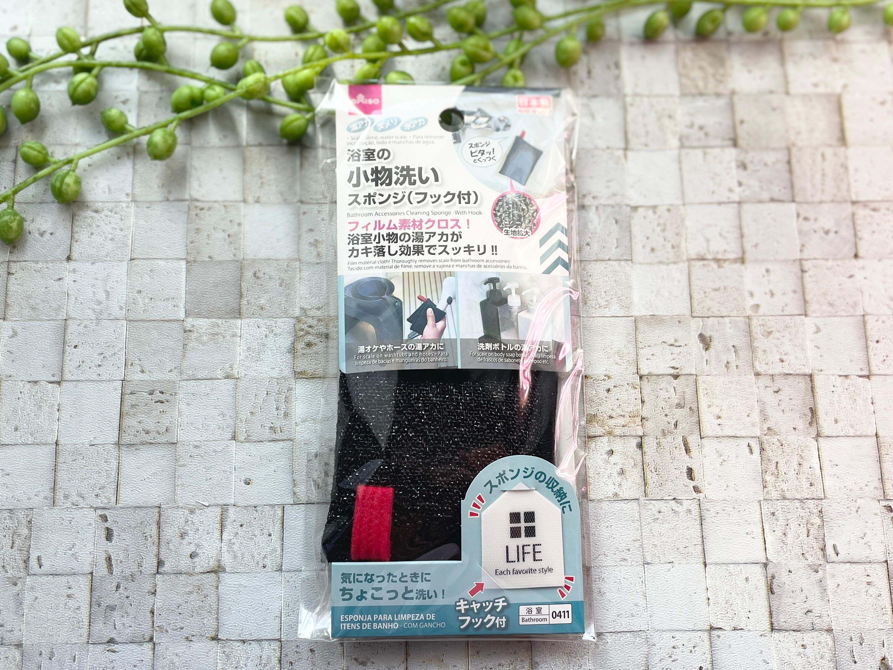 ご紹介するのは、ダイソーの「浴室の小物洗いスポンジ(フック付)」です。価格は110円。