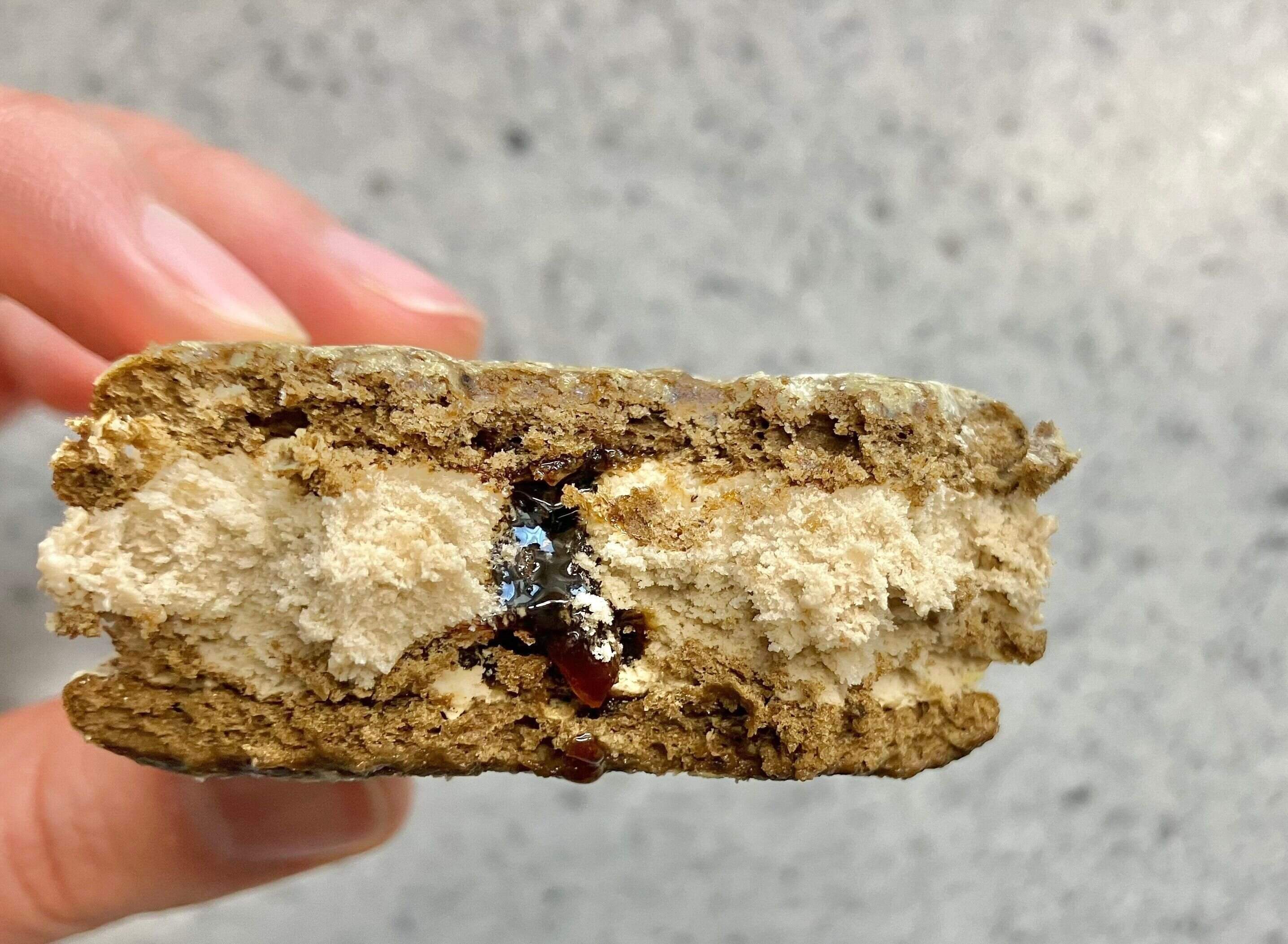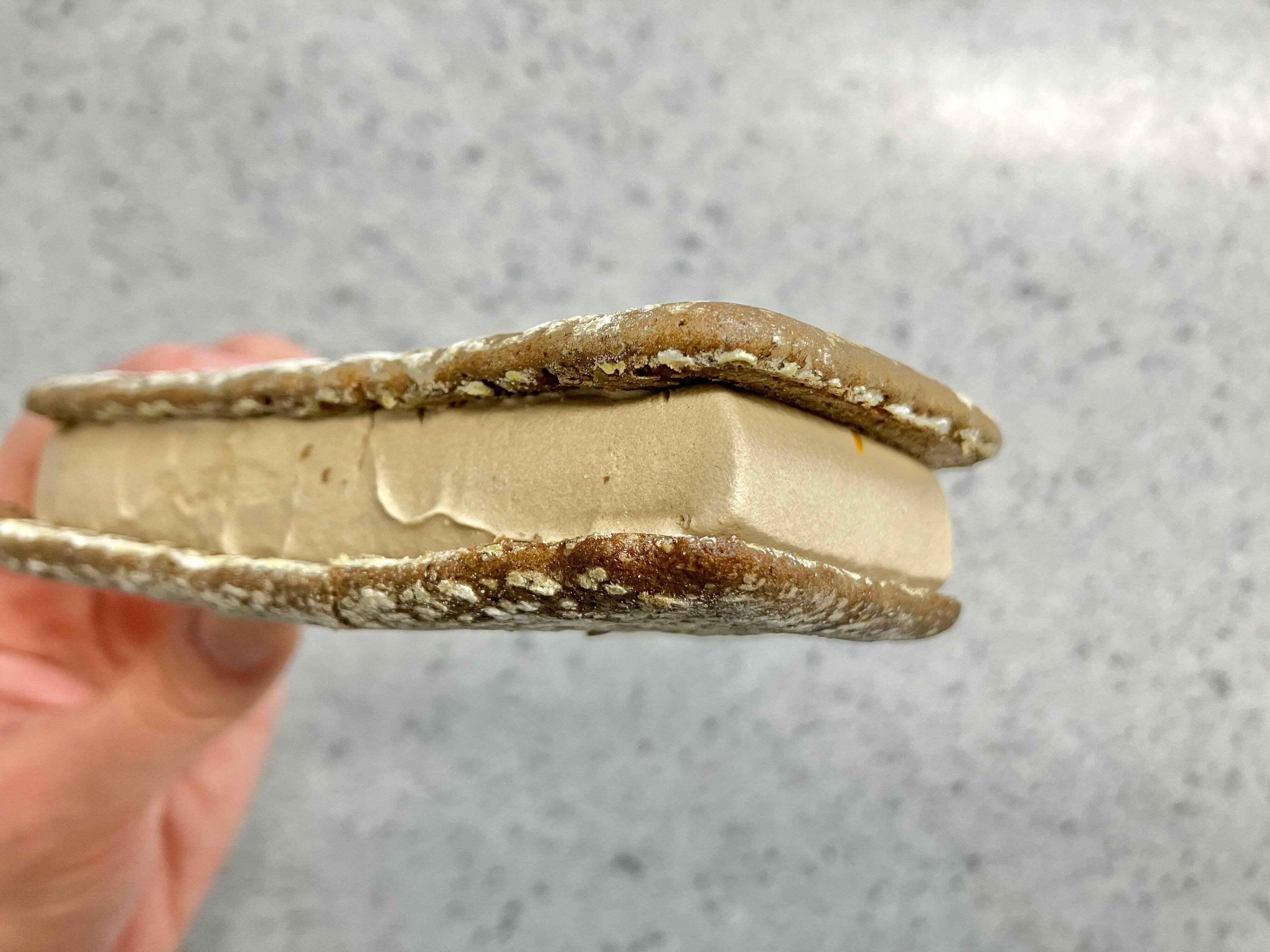 たまに横幅が細いサンドアイスもあるのですが、こちらのアイスは小ぶりな大きさではないので嬉しいです。